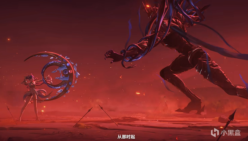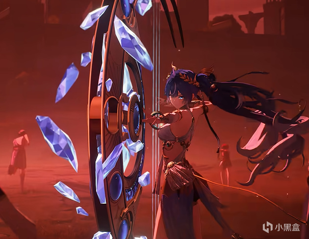 和奥古斯塔一样,尤诺在过去也看到了小时候的自己,不知道这里是代表尤诺自己的思考还是真实的看到了过去,如果是后者就很有意思了,小尤诺可爱捏,激励尤诺为什么一定要按预言来做,想要画什么应该是由自己决定,然后交给尤诺绘画未来的“笔”,不知道是什么物件,如果只是单纯的刻子又感觉放在pv中太过粗糙还给了个大特写,而且从小尤诺手中接过“笔”后,尤诺才拥有了月弓的共鸣能力,在那之前她使用的只是普通的弓。