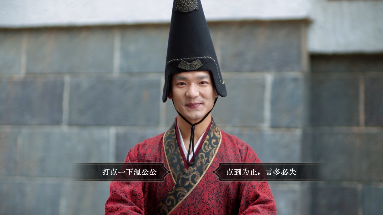 作为一款影游,卖相也相当重要。至少在序章中可以看出,本作的服化道相当上心,运镜处理专业,且有着各种能表达情境的环境特写。在出现紧张氛围时,BGM会恰如其分地出现鼓点或者弦乐,着实加分不少。而男主的气质虽然比不上胡歌,但与《琅琊榜》中的靖王萧景琰相当。等等,靖王?晋王...我似乎懂了些什么。