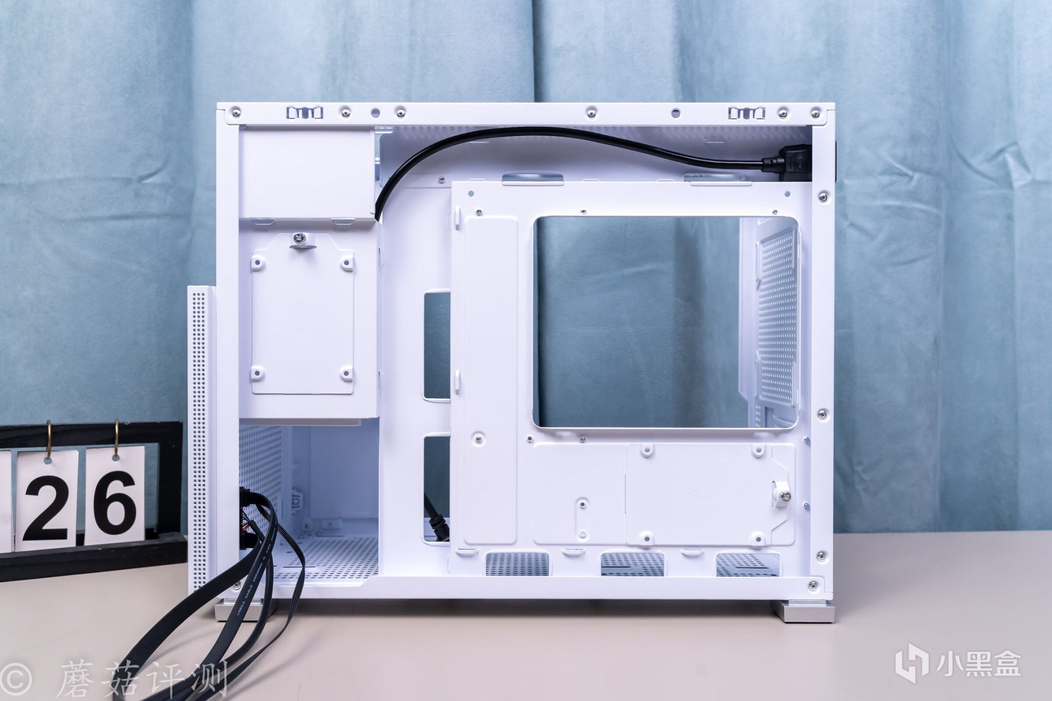 ▼機箱的內部結構設計的很有意思,和常見的mATX規格的機箱不太一樣。