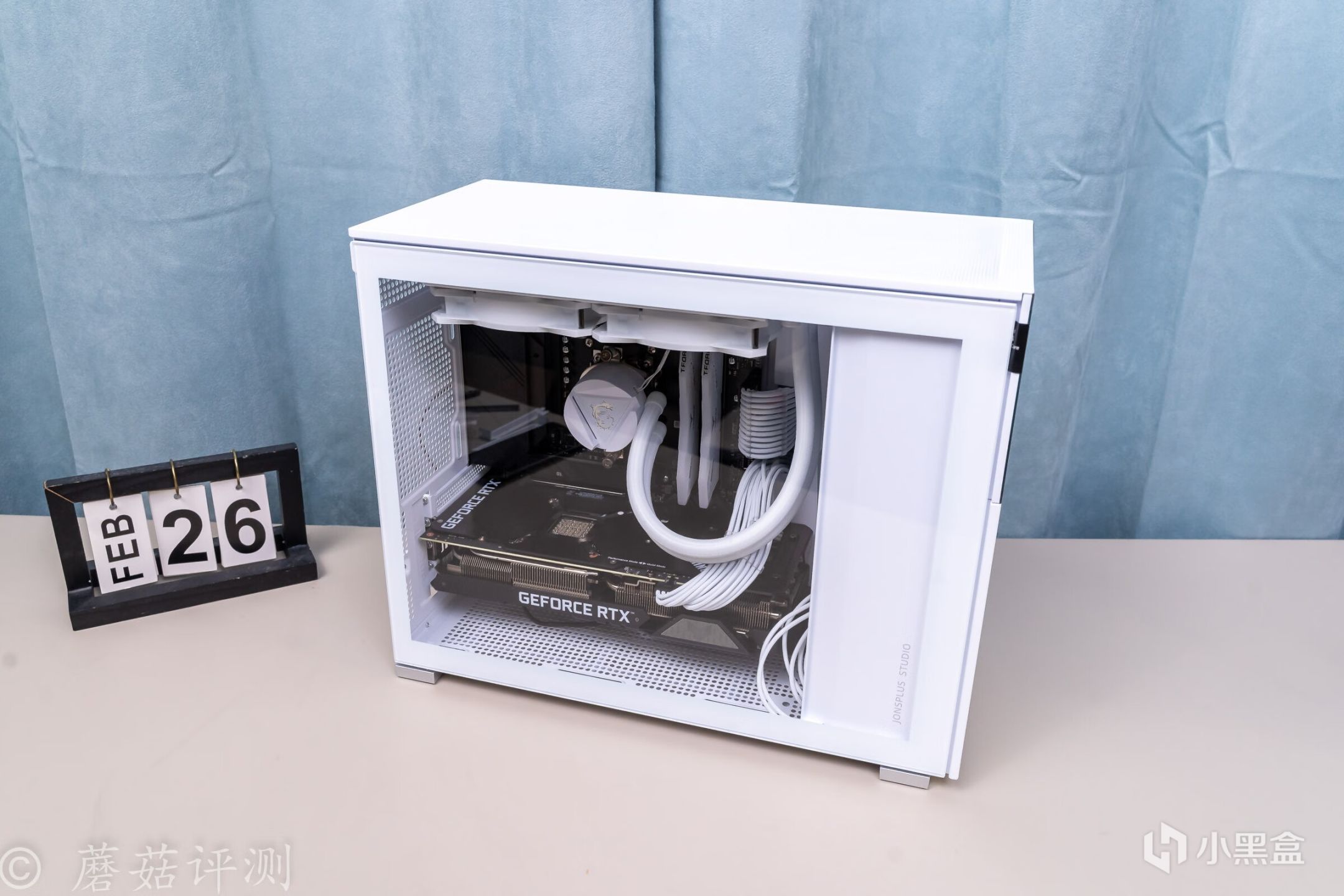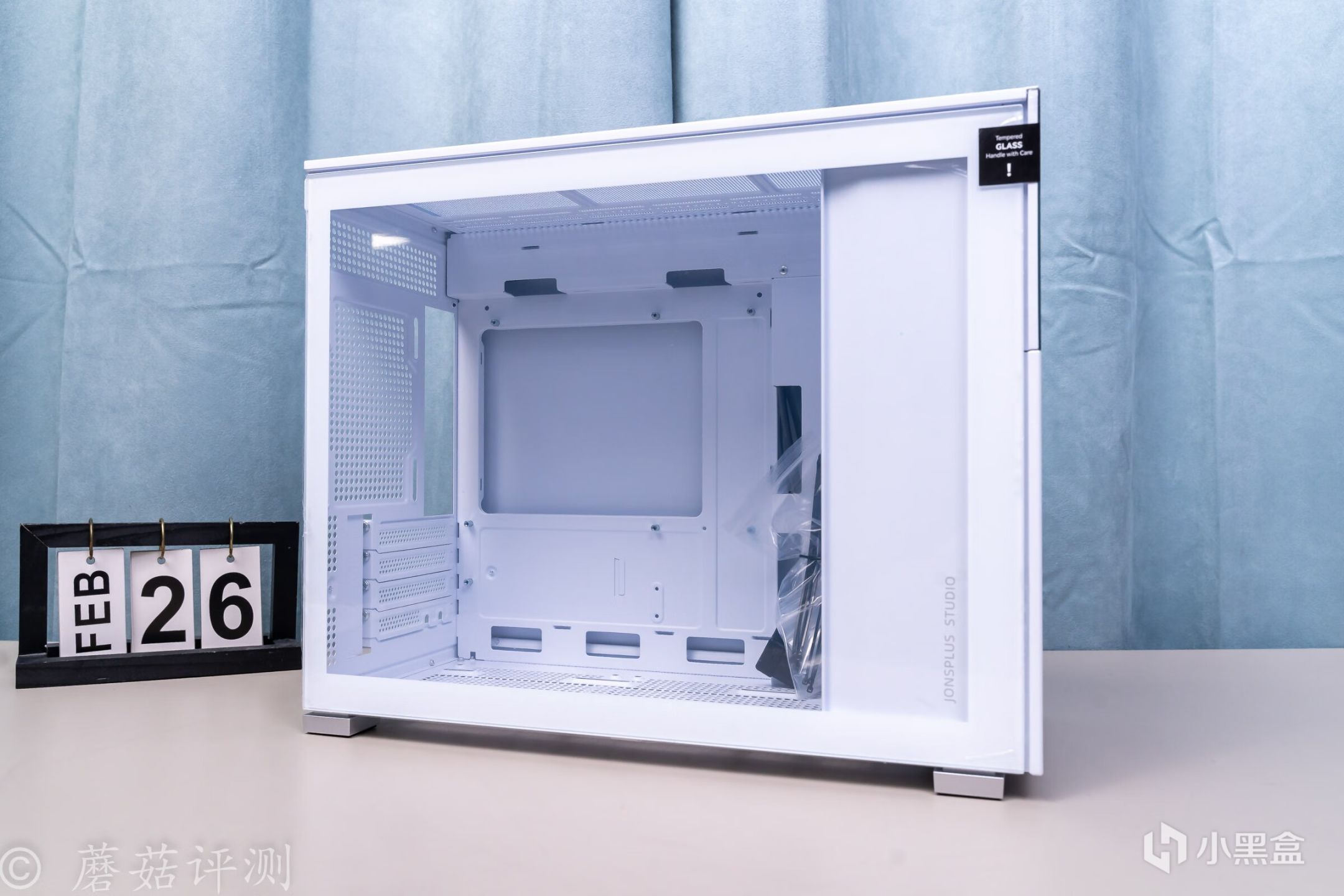 ▼機箱的外觀非常漂亮,側面有大面積的側透玻璃,且玻璃是白透的,內部硬件的展示效果更加出色。