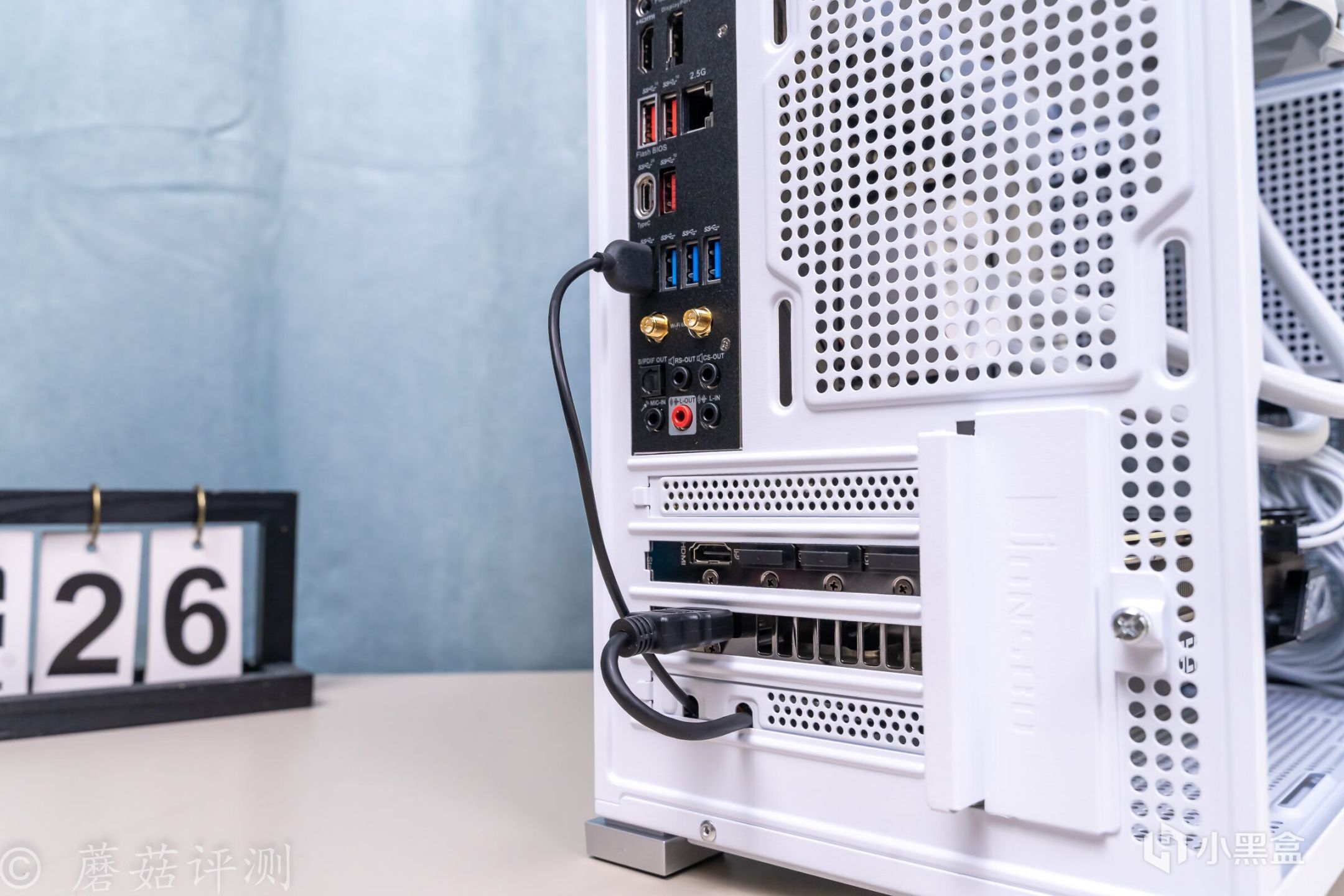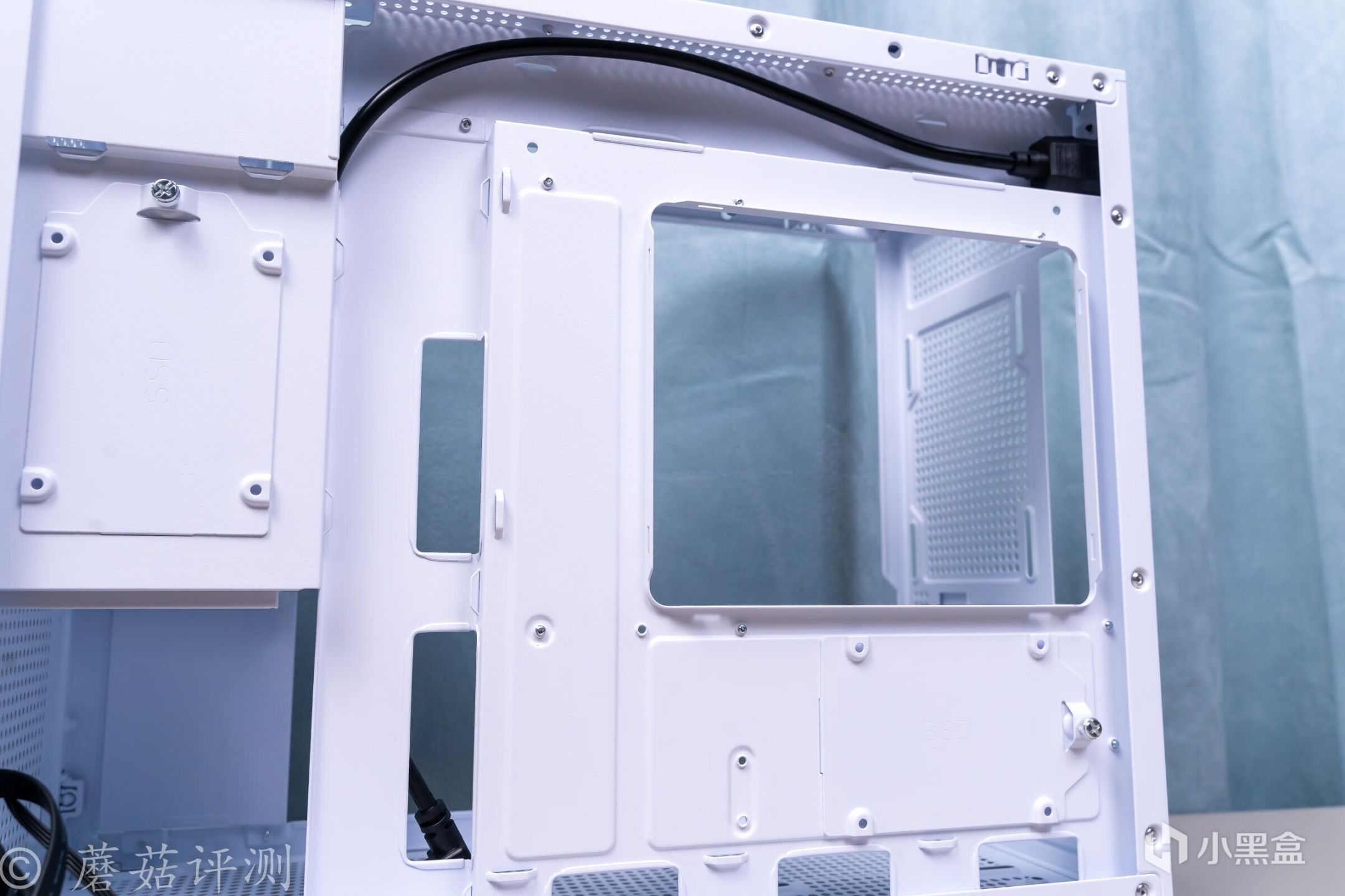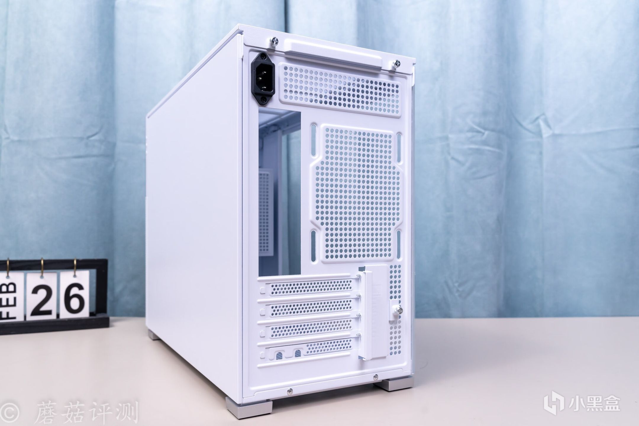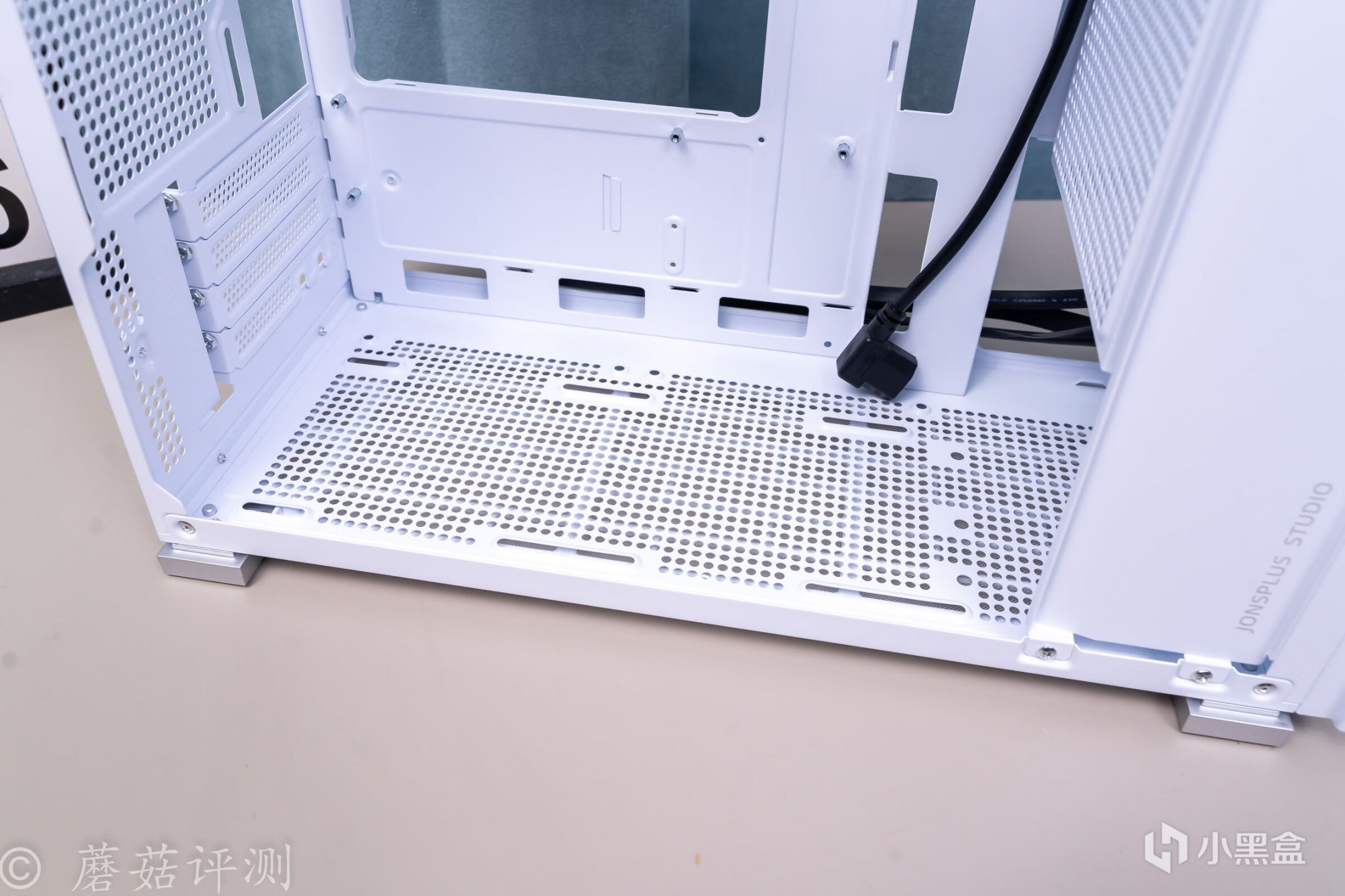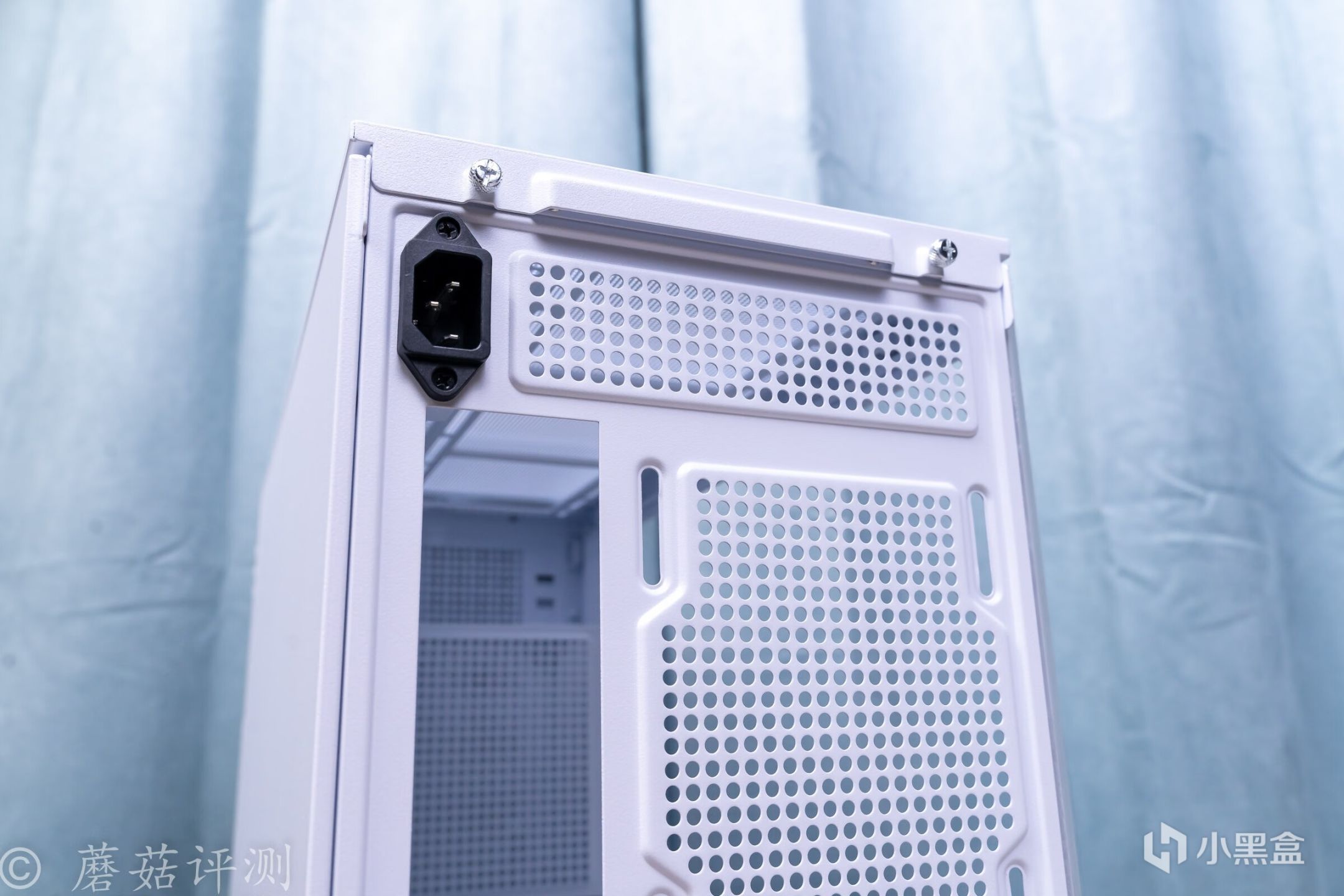 另外,這款機箱的散熱上限非常高,機箱前部、後部、底部、上部,都能安裝機箱風扇。如果是需要長時間使用的話,蘑菇建議還是多裝機箱散熱風扇,尤其是顯卡的下面,整體的散熱表現會更好。