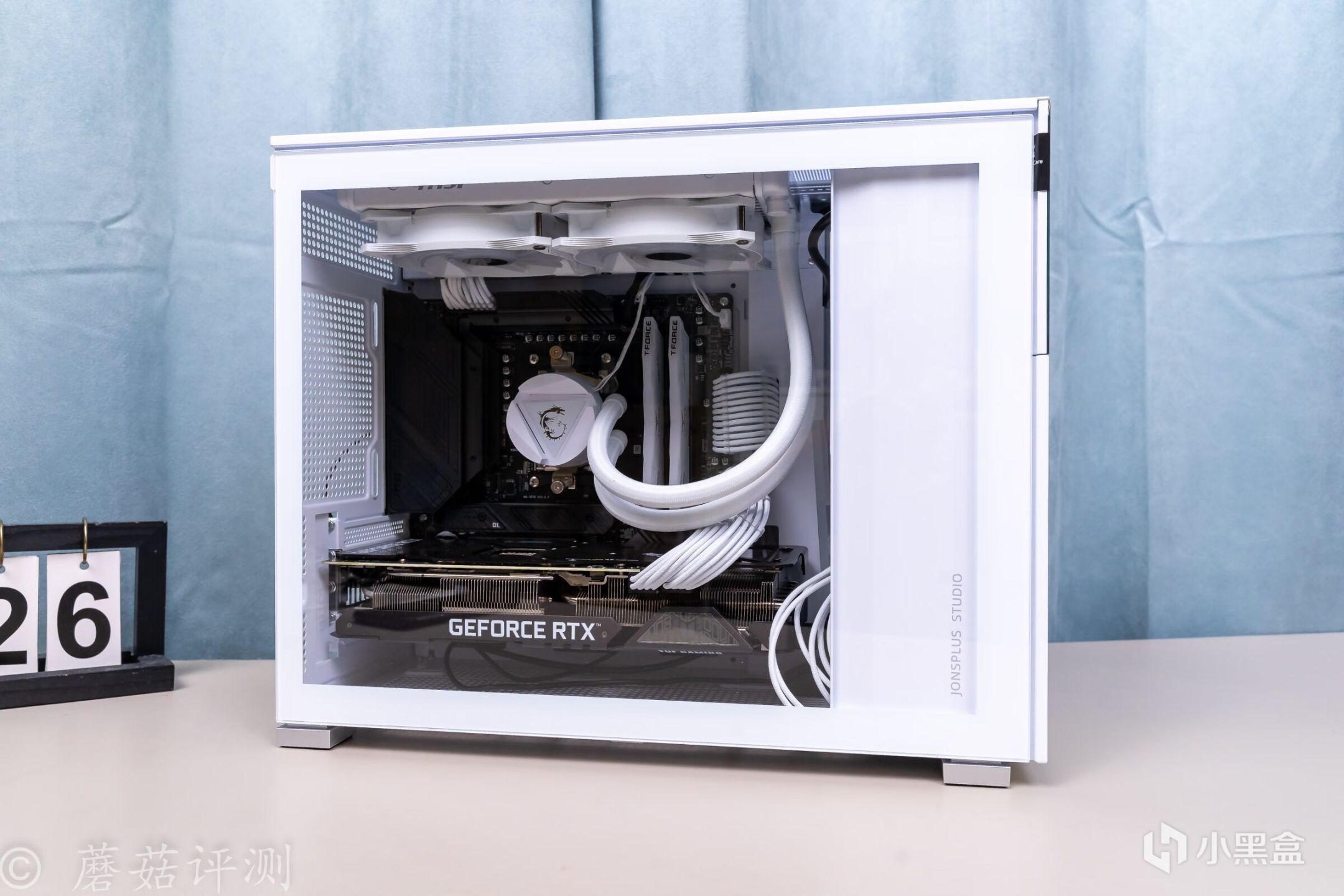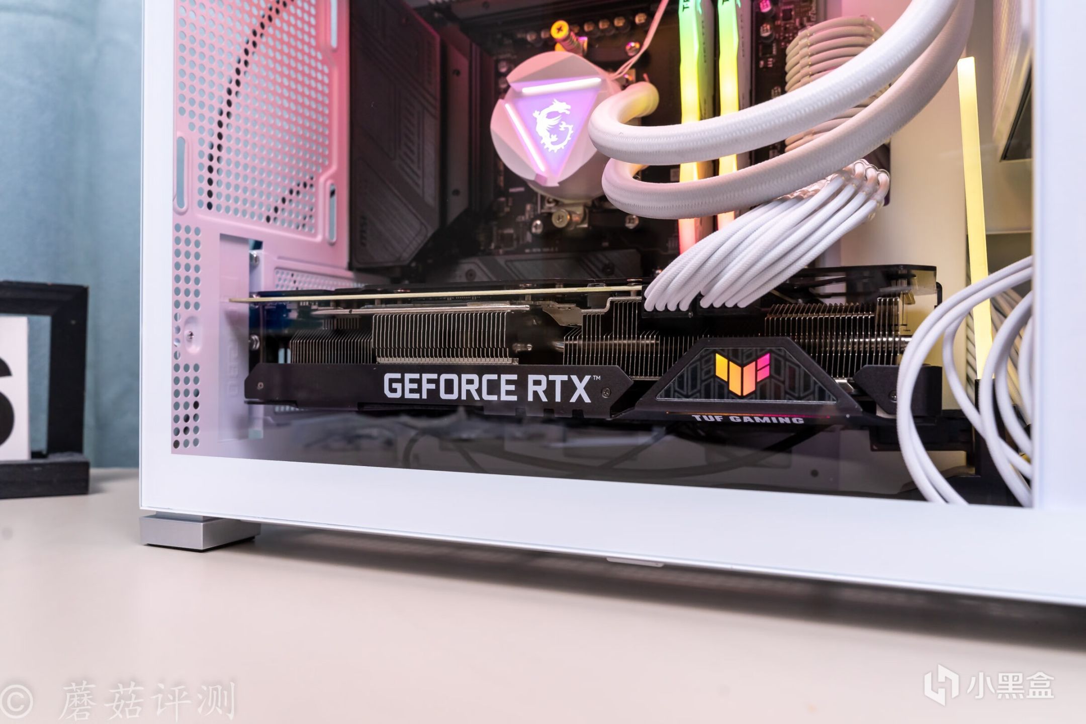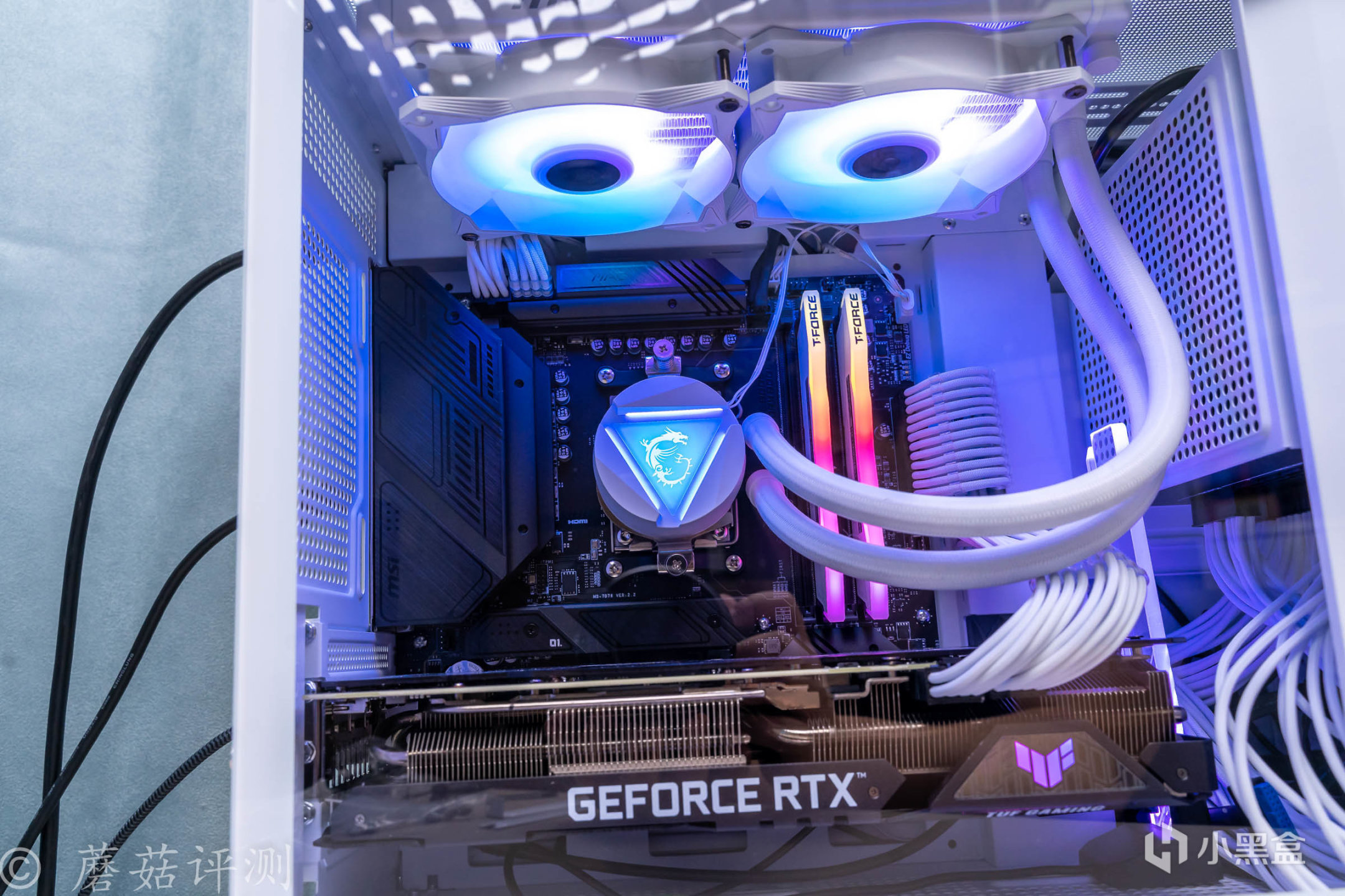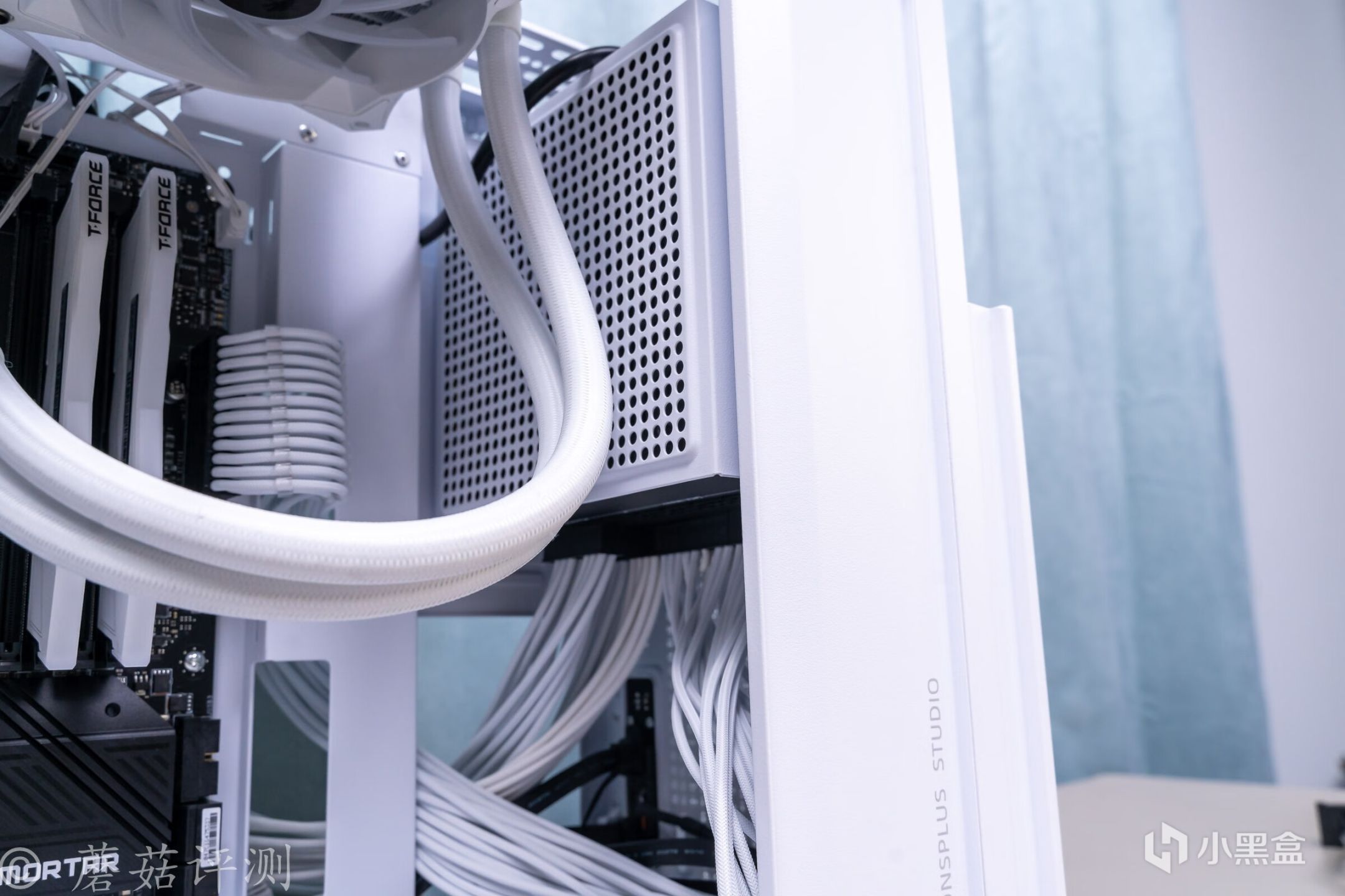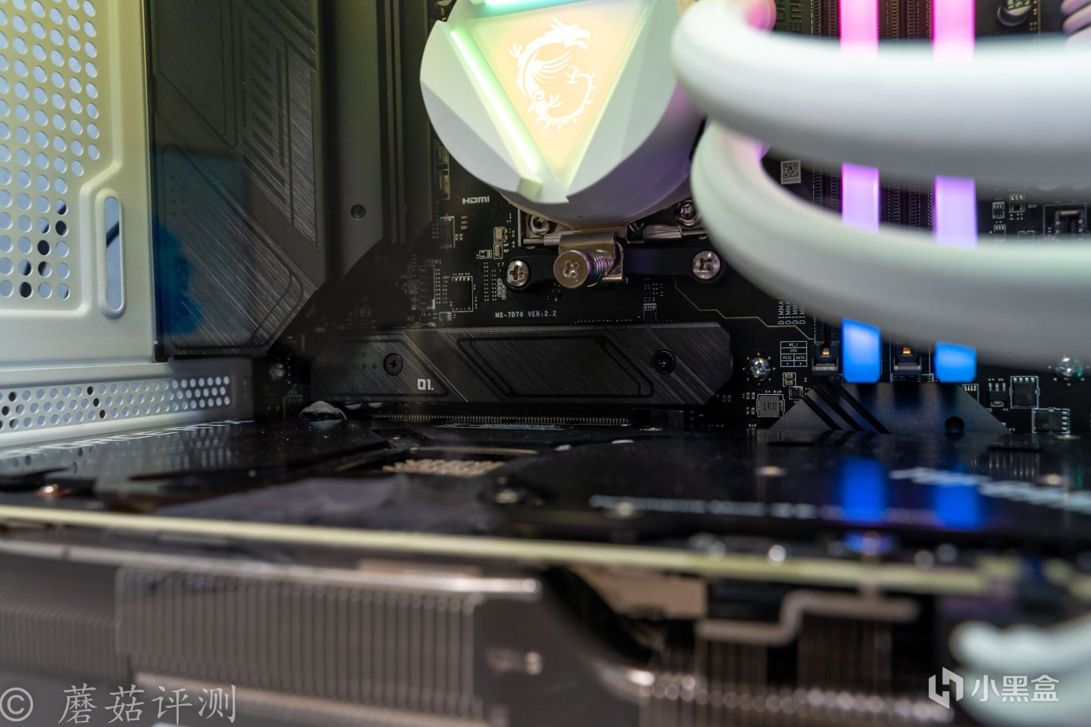 另外,這款機箱的散熱上限非常高,機箱前部、後部、底部、上部,都能安裝機箱風扇。如果是需要長時間使用的話,蘑菇建議還是多裝機箱散熱風扇,尤其是顯卡的下面,整體的散熱表現會更好。