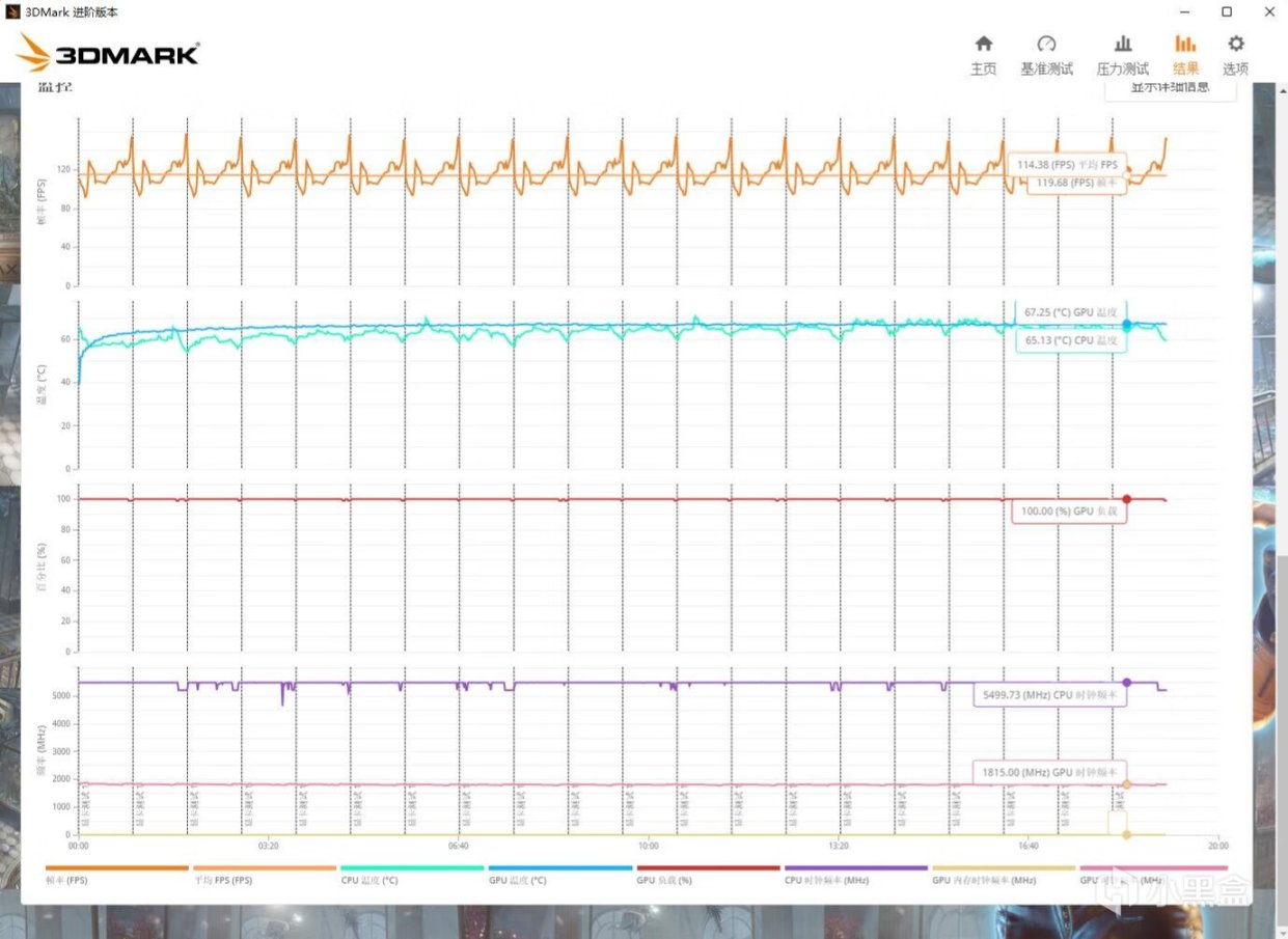 ▼跑個3Dmark的壓力測試,TS模式,幀數穩定率在98.9%,非常穩定。