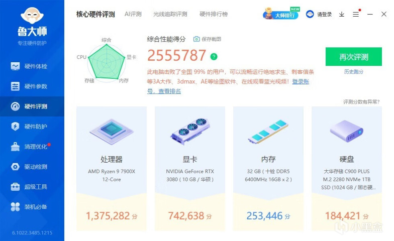 ▼簡單看下整機配置,處理器是7900X,主板是微星的B650M迫擊炮WIFI,顯卡是華碩的RTX3080 10G TUF,整機配置很強。