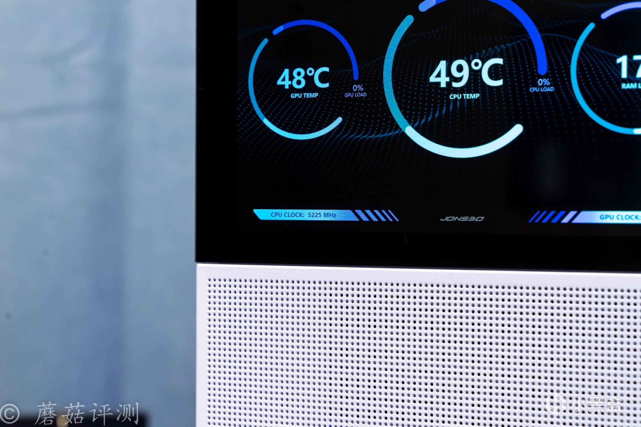 ▼除了常見的溫度和佔用之外,屏幕的左下角和右下角還有處理器核心和顯卡核心的頻率,可以隨時隨地掌握更多的機箱硬件信息。另外,這個還支持自定義,自己也可以做一個相關的監控,添加更多的內容,或者更加美觀,都可以。
