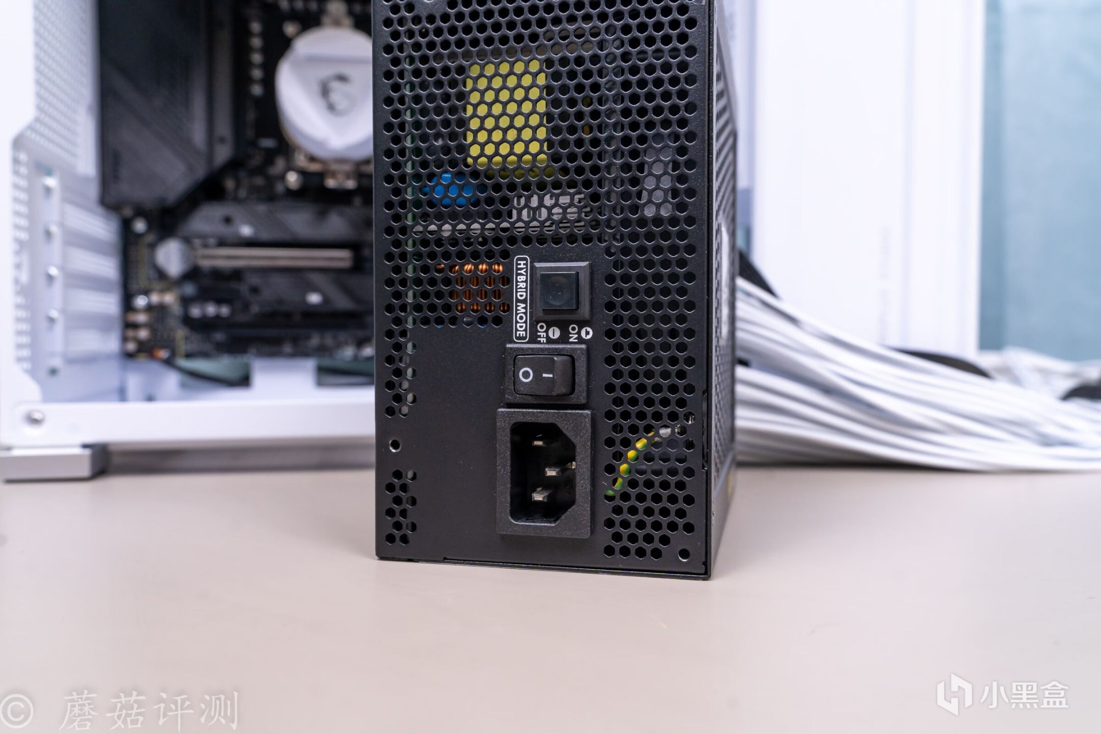 ▼電源尾部,除了供電插口和開關之外,還有一個電源風扇運行模式選擇按鈕,可以在溫控和靜音模式之間切換,其中靜音模式下,電源的散熱風扇低負載停轉,進一步降低待機噪音。