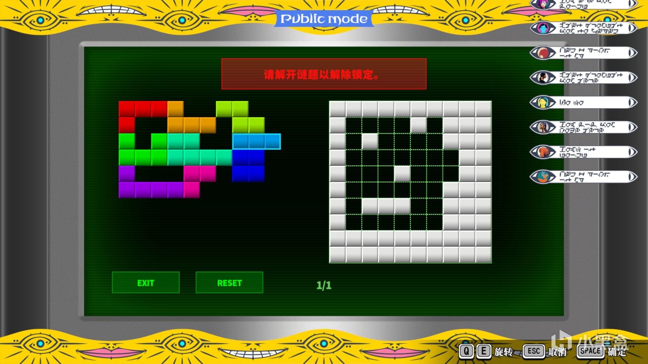 我也被上圖的俄羅斯方塊折磨許久,我個人實在不太熟練此類玩法。(我會在評論區放最後一個密室的俄羅斯解答圖)