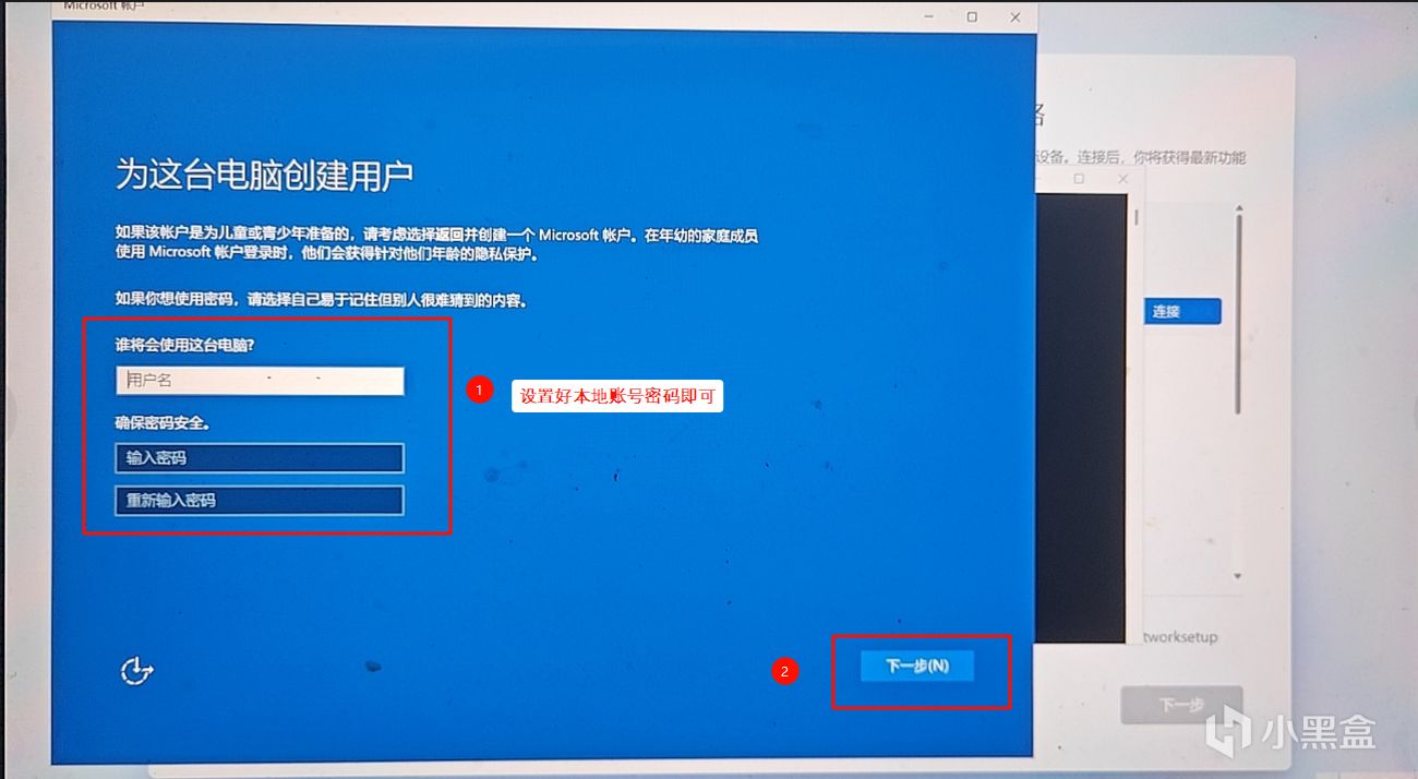 画面会立刻刷新,出现创建本地用户名的界面,成功跳过。