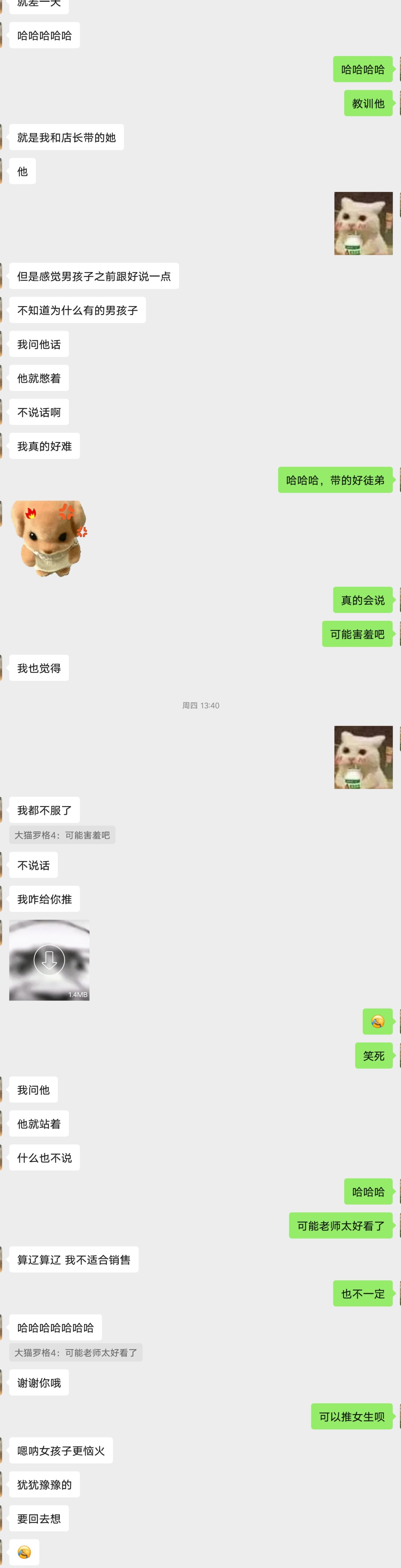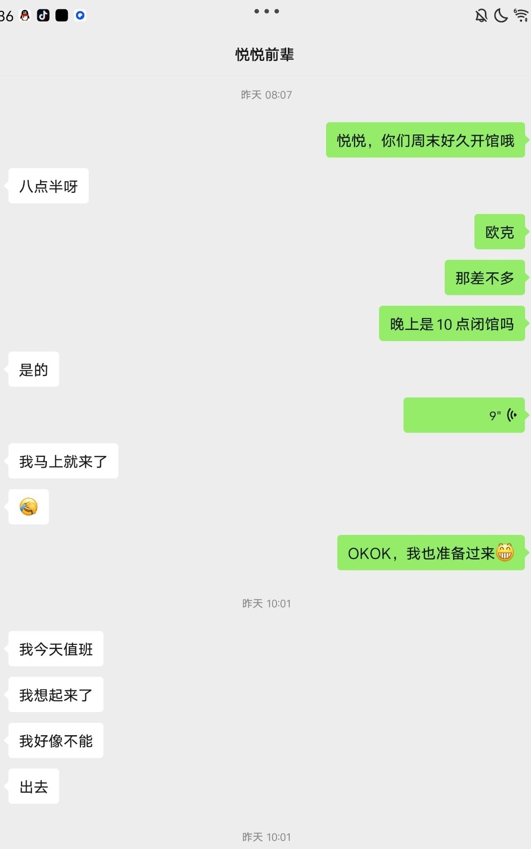 前辈叫悦悦,人很踏实,但是好像有点介于社恐和社牛之间