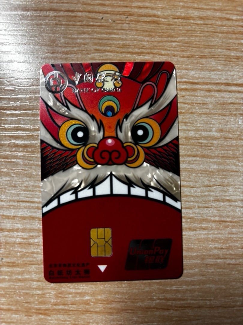 我在龙年生肖卡中的玉龙戏珠版和飞龙在天版中纠结了一会,最终选择了更便宜的飞龙在天版本, 也是因为卡图看起来更有设计感一些。用工行本家卡上缴了10元工本费之后我就回去等通知了,没想到这家是真的慢,直到(日期)我才收到了去网点提卡的通知,实卡到手之后,工艺还是蛮不错的