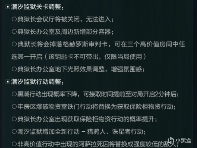 潮汐監獄的新BOSS,頂替渡鴉,渡鴉要靠接取對應的兩個任務“誅星者行動”和“獵鴉人行動”才能打,不管接哪個最後兩個BOSS都會反水,能舔兩個BOSS的盒子,還有新BOSS會掉專屬房卡,局內特定房間使用,渡鴉掉落會掉新的針劑,也是當局使用。