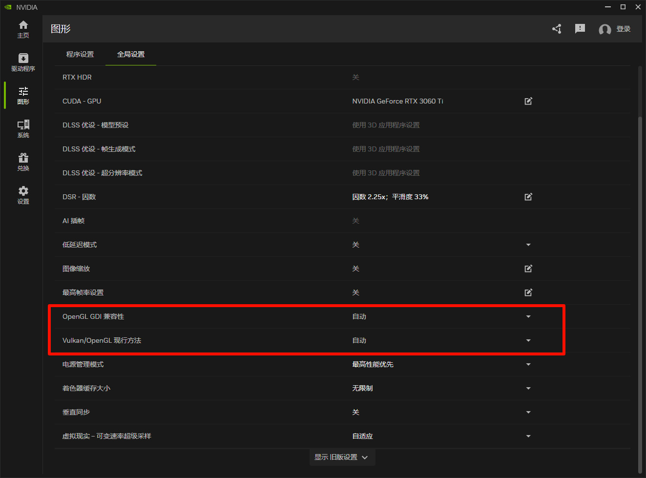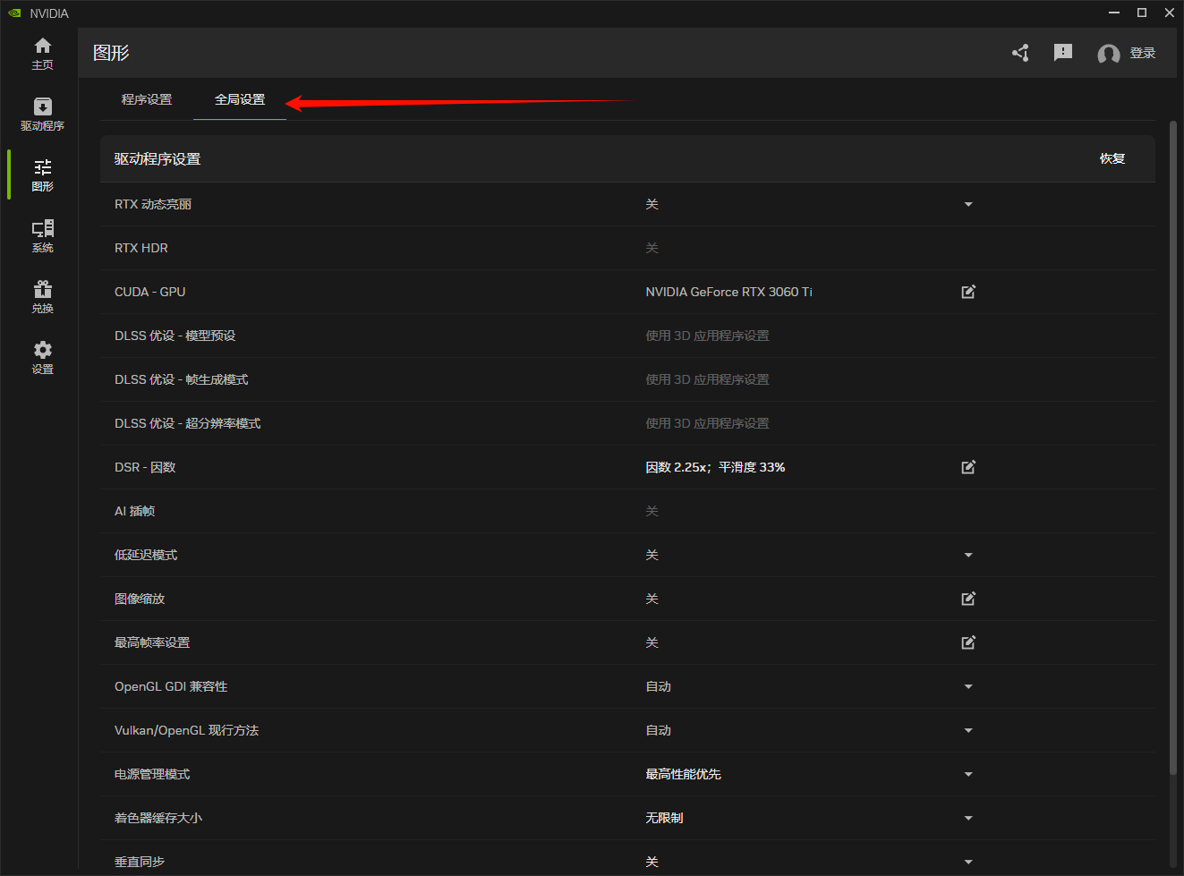 另一頁全局設置裏驅動設置很重要,我將講解其中功能的作用。