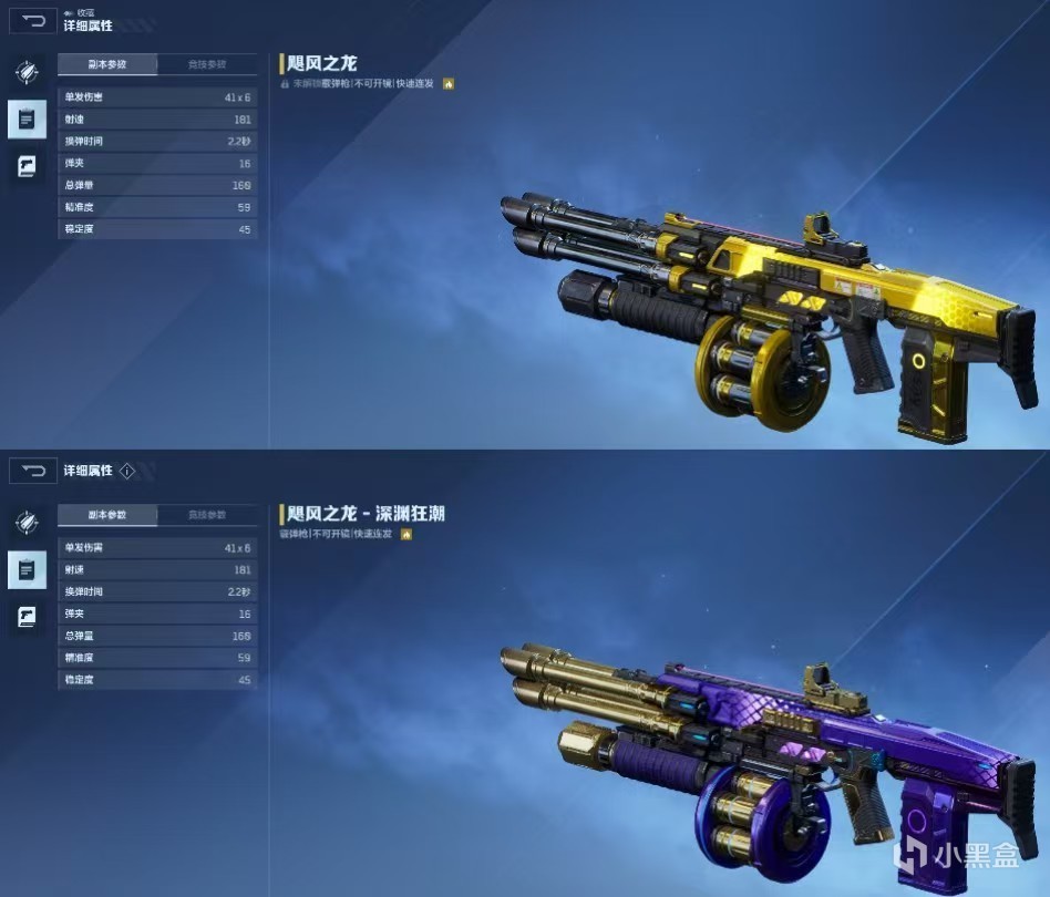 皮膚與原型槍比較,屬性一致