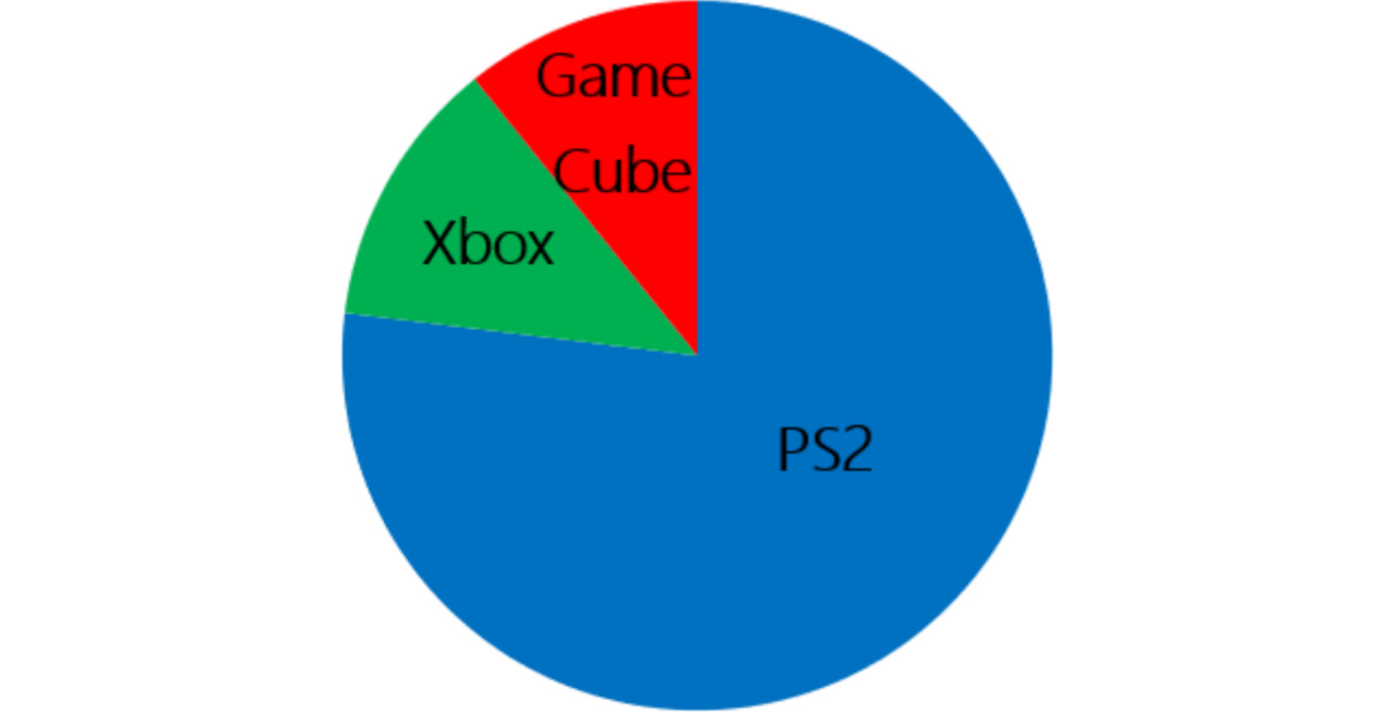 一年後,任天堂GameCube姍姍來遲,微軟Xbox同時入局,兩家相互追趕,卻難以走到舞臺中央。原本承諾NGC獨佔的生化4上了PS2,甚至專爲其製作艾達篇