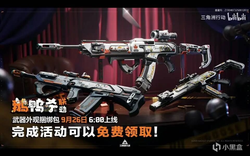 鵝鴨殺聯動的一個武器捆綁包,9月26日6點上線做完任務可以免費獲取。捆綁包給了三把槍,分別是ASH-12戰鬥步槍、QJB201輕機槍,QCQ171衝鋒槍。(看着像這幾把槍具體等官方上線)