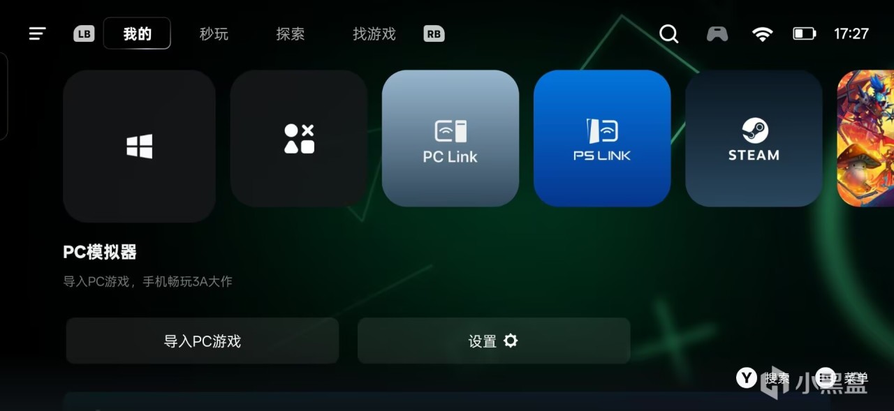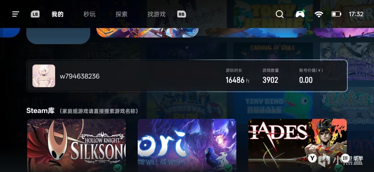 第二步則是下載遊戲,這裏你可以自行下載後導入或者直接從頂部點擊搜索or按Y搜索自己想玩的遊戲,不過這些都不夠爽,既然綁定steam賬號,還是從steam庫裏玩自己有的遊戲最有感覺。