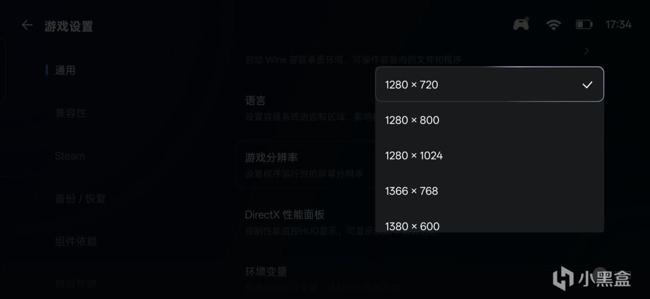想要更高畫質的進入PC遊戲選項後在通用這裏可以選擇分辨率,默認是720p,小屏幕手機720p看起來也基本夠用,想要更高的畫質可以改爲1080p。