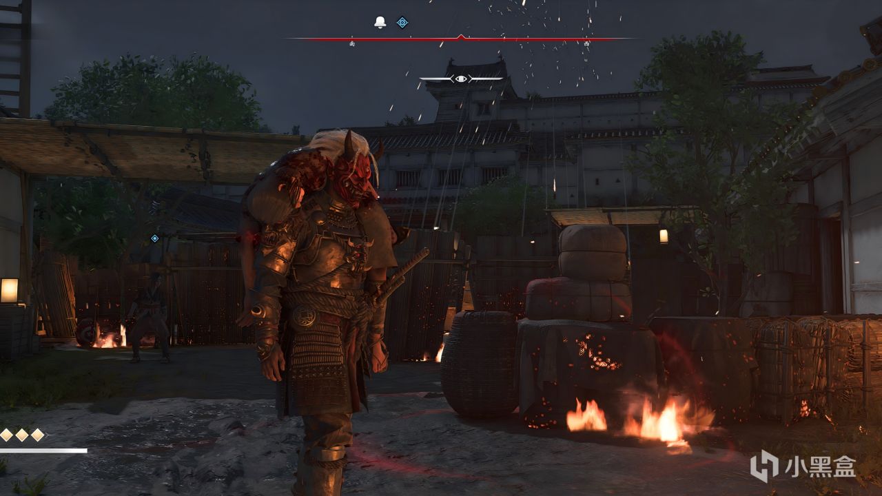 首先我們要聽她嘲諷主角的聲音,確定其大概位置。然後按住觀察鍵(我的是手柄 LT 鍵)環顧四周,當屏幕的四角被藍色的光全部照亮時,那麼野分就在我們的正前方,這時我們則需要利用地形靠近暗殺她。在此期間要注意她的假身以及地上的陷阱。