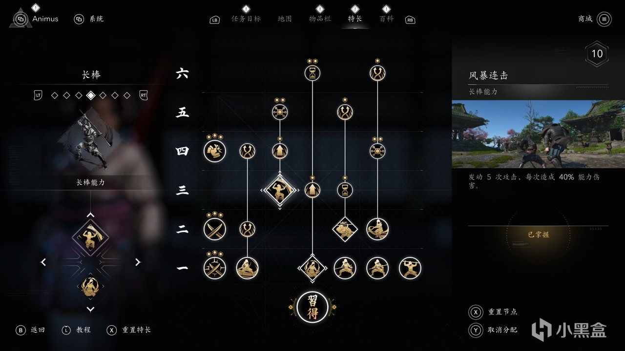 長棒的技能樹升級和以往的武器升級一樣,但是貌似沒有跟任務劇情有關的技能解鎖限制,可以直接洗點升級滿!