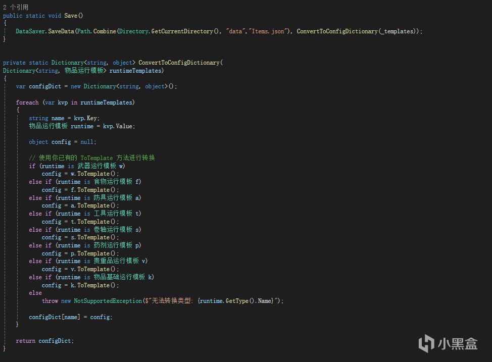 首先,這一步,我們的字典內存儲的是物品的運行模板,運行模板不能直接保存,因爲它不是配置模板(哪怕兩者內的數據一模一樣),我們需要將其進行轉換,轉換成配置模板再進行保存。
