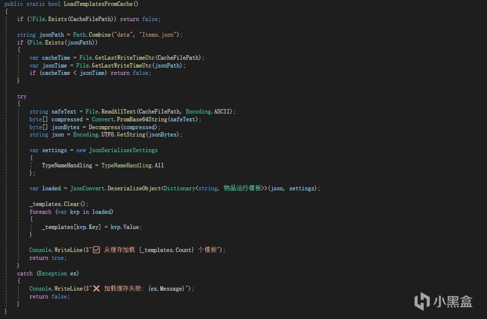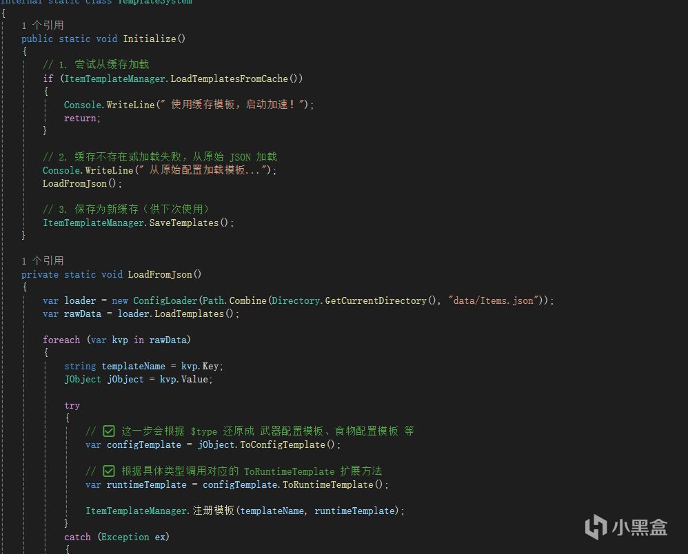 有人應該已經發現了,在Load方法裏嘗試了對兩個文件(緩存文件和JSON配置文件)進行比較時間,而在方法Initialize裏,總是先加載緩存,發現沒有緩存,或者緩存比JSON配置文件老(可以理解爲有新的模板被添加了),則讀取JSON配置文件,在註冊運行模板完畢後,保存運行模板到緩存裏,之後,只要沒有添加新的模板,緩存永遠比配置文件新,讀取緩存。