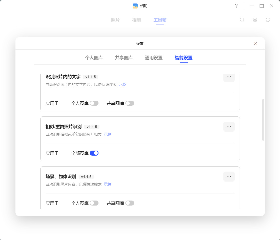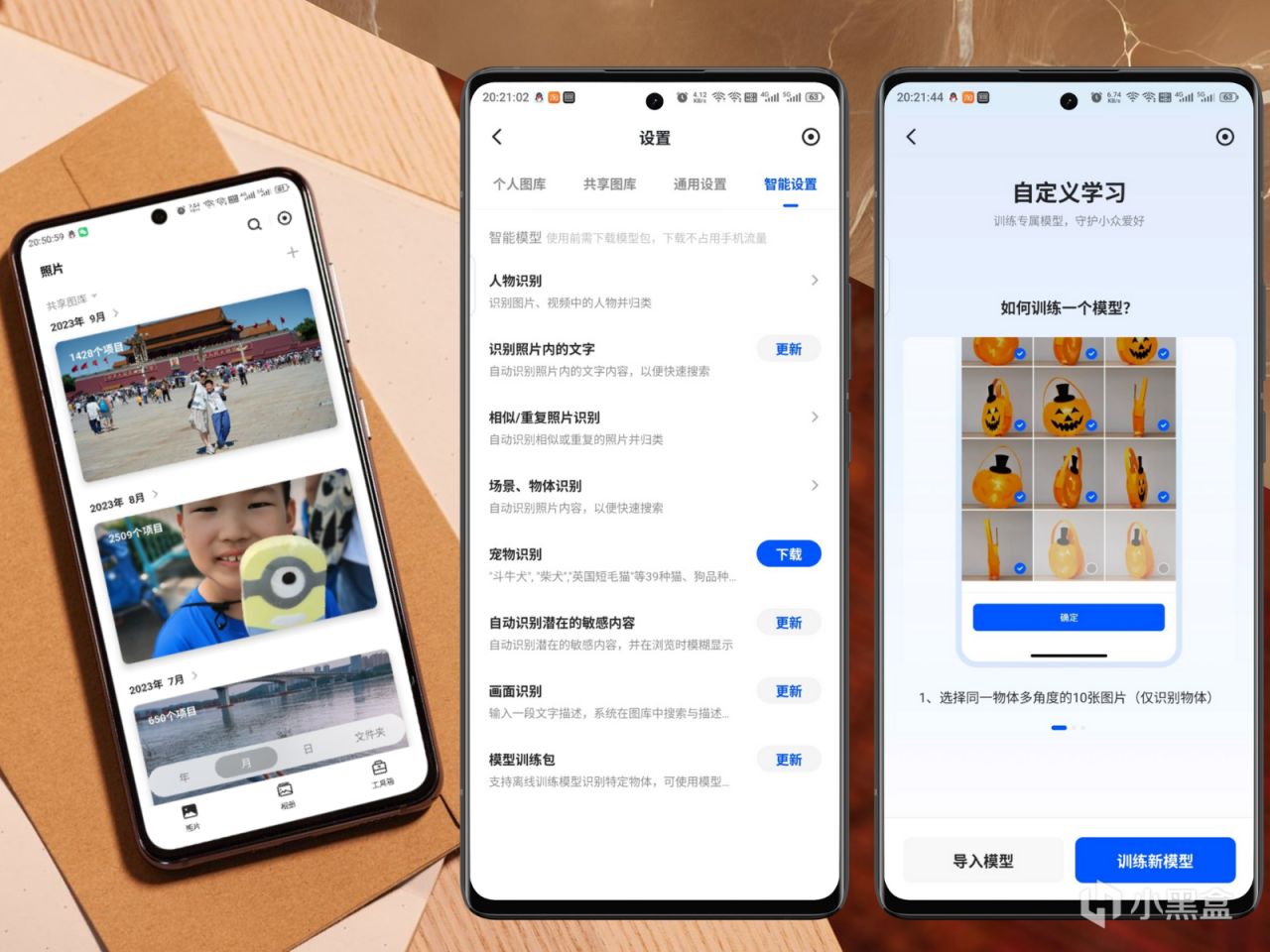 备份后的照片会由系统自动智能分类,通过内置的NPU单元加速识别照片中的人物、地点、场景甚至是具体事物。还能训练自己的专属模型,自定义识别目标。