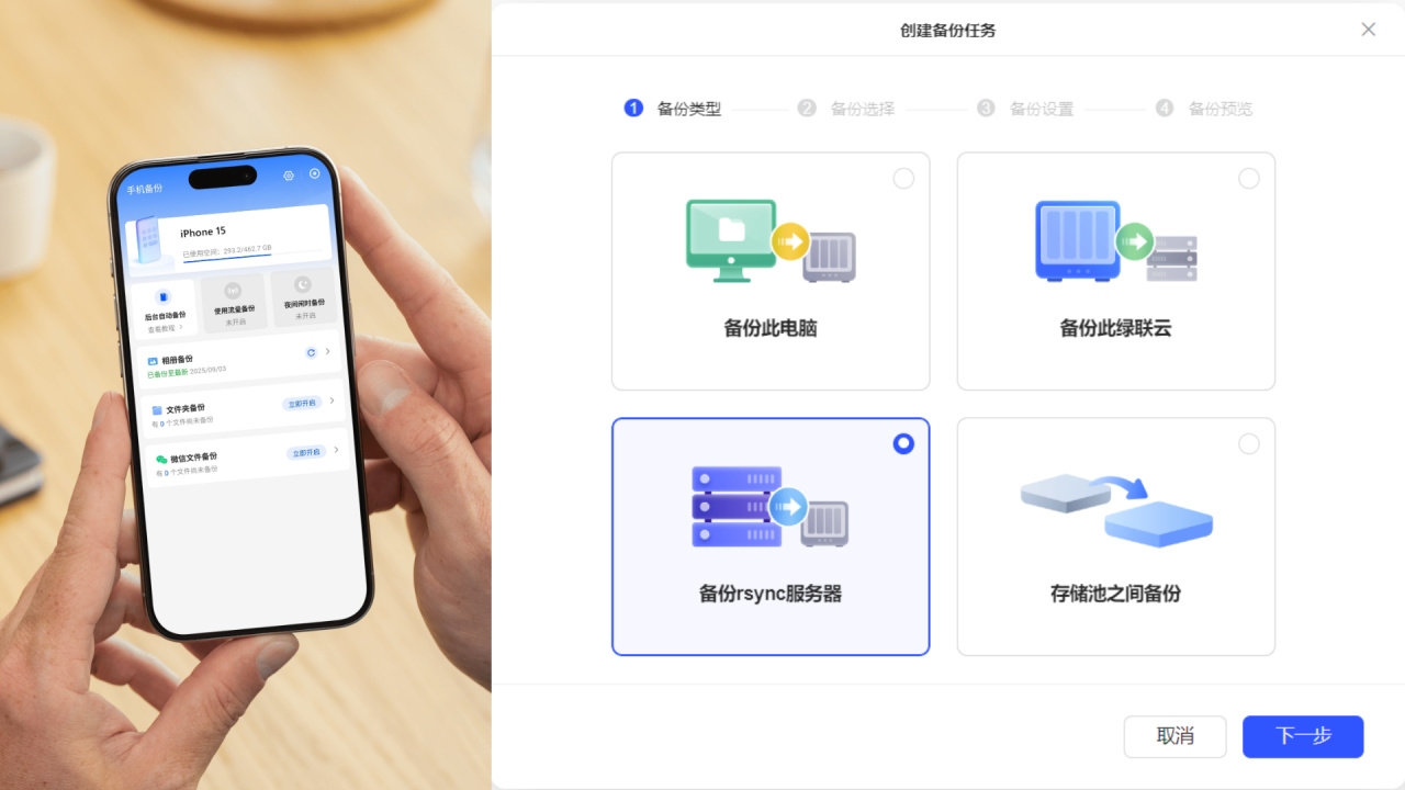 绿联云APP支持手机相册自动备份,可以设置仅在WiFi环境下备份以避免消耗移动数据流量。