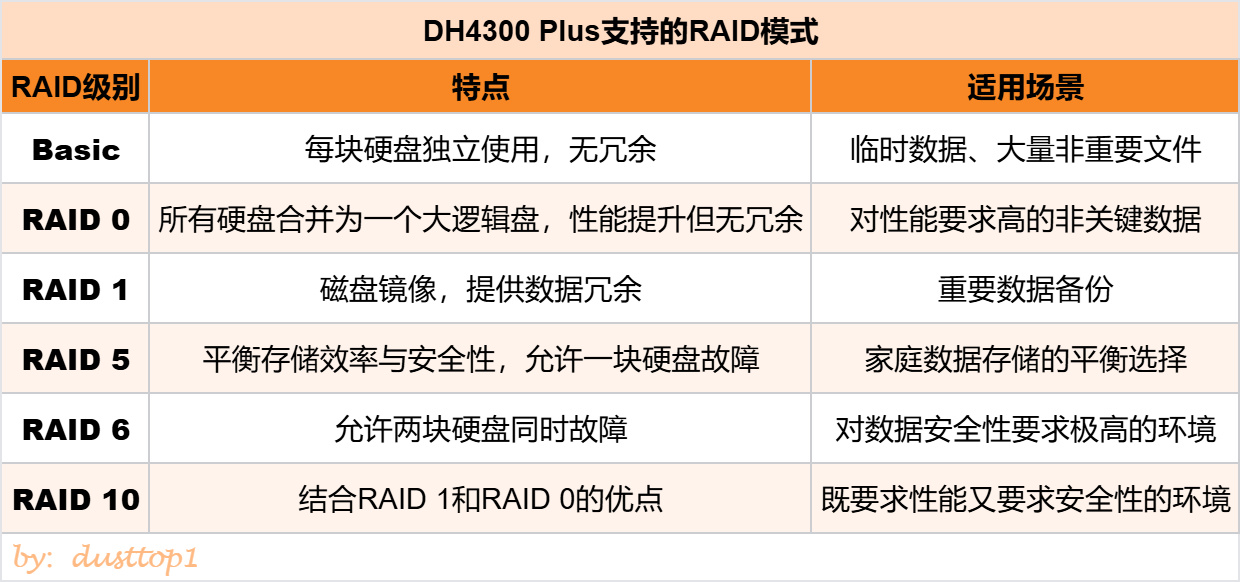 相比于公有网盘,私有NAS的最大优势之一就是数据安全性。DH4300 Plus提供了多重数据保护机制: