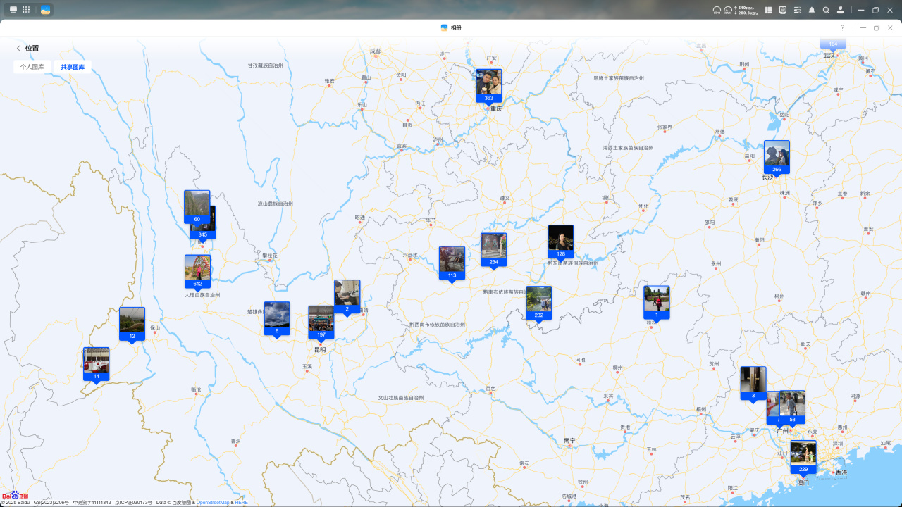 地点相册则通过照片的地理位置信息在地图上展示拍摄点,特别适合旅行照片的管理。