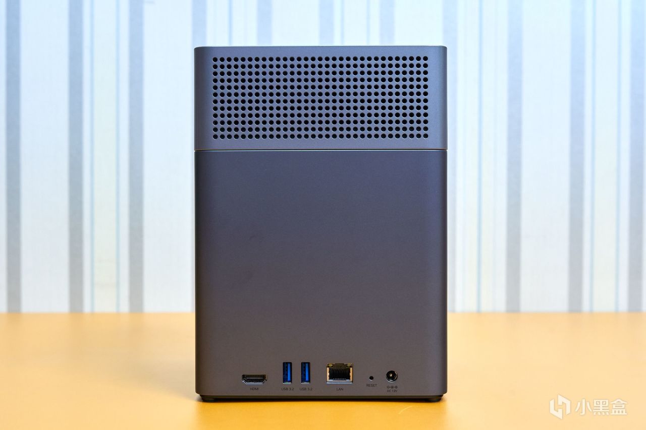 背面则集中了HDMI 2.1接口、两个USB 3.2 Gen1接口、2.5GbE网口、复位孔和电源接口。USB接口为扩展功能提供不小空间,默认支持连接外置存储设备、UPS或无线网卡等,兼容型号还随系统更新不断增加中。