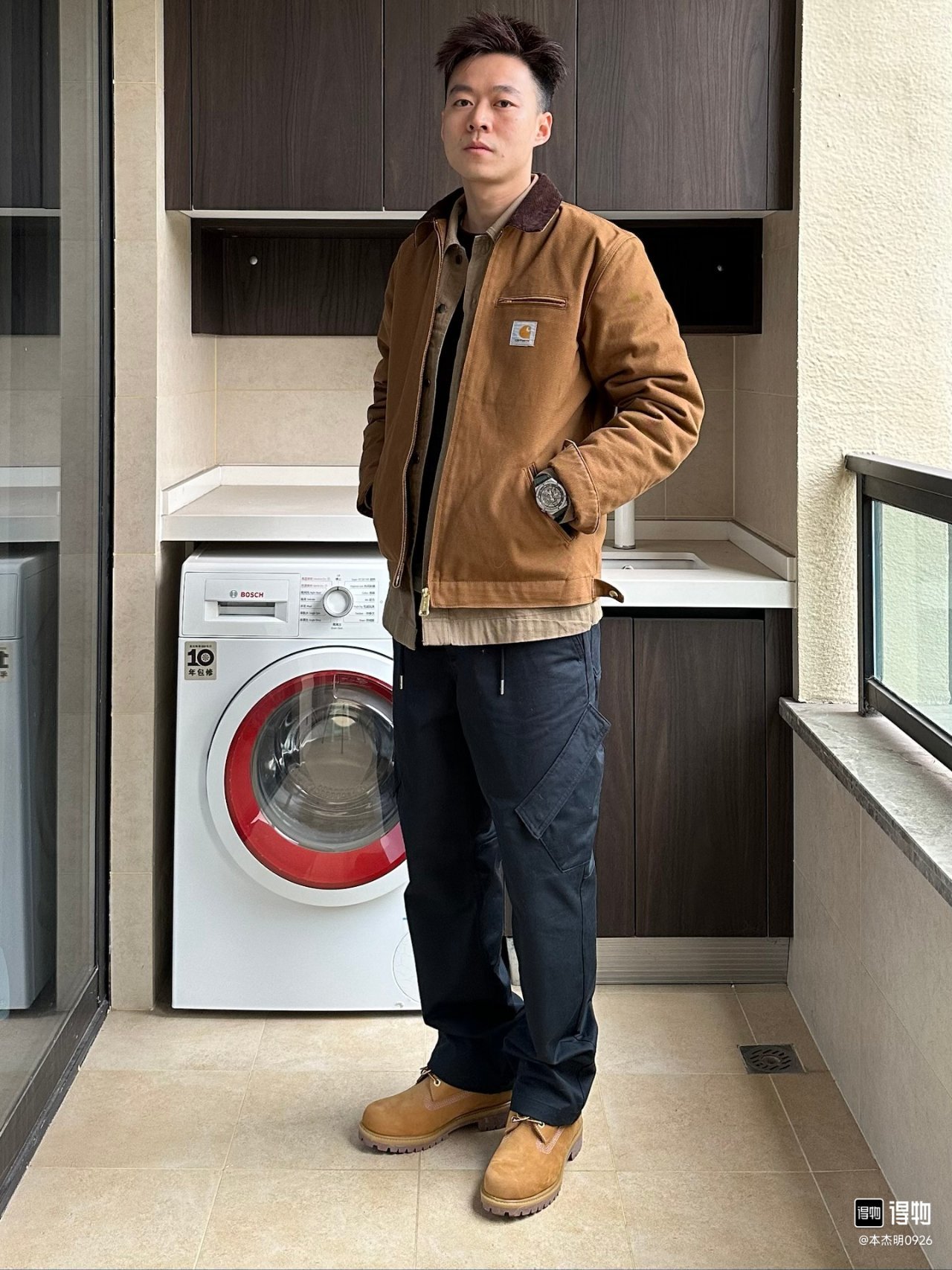 小黑盒不讓放鏈接啊我就不放了,其實大部分都是雜牌貨,沒必要特別去找。我覺得工裝最重要的是外套和褲子一定要硬挺,造型就出來了。工裝穿搭的精髓在於「層層疊加」和「鬆弛有度」,整體營造出一種不費力的酷感。總而言之,工裝穿搭超越了單純的潮流,它是一種對經典、質量和實用主義的致敬。它既可以是粗獷硬朗的,也可以是 City Boy 那樣的都市休閒風格,關鍵在於選擇適合自己日常的單品,穿出屬於自己的隨意和自信