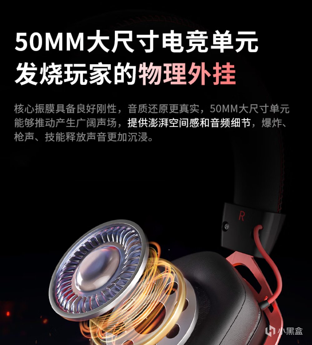 耳機搭載50毫米大尺寸單元,剛性極佳,耳機的聲場非常開闊,音質還原真實,加上自己的低延遲的芯片,解析力不錯,聽起來還是蠻通透的,打遊戲我覺得沒有任何問題