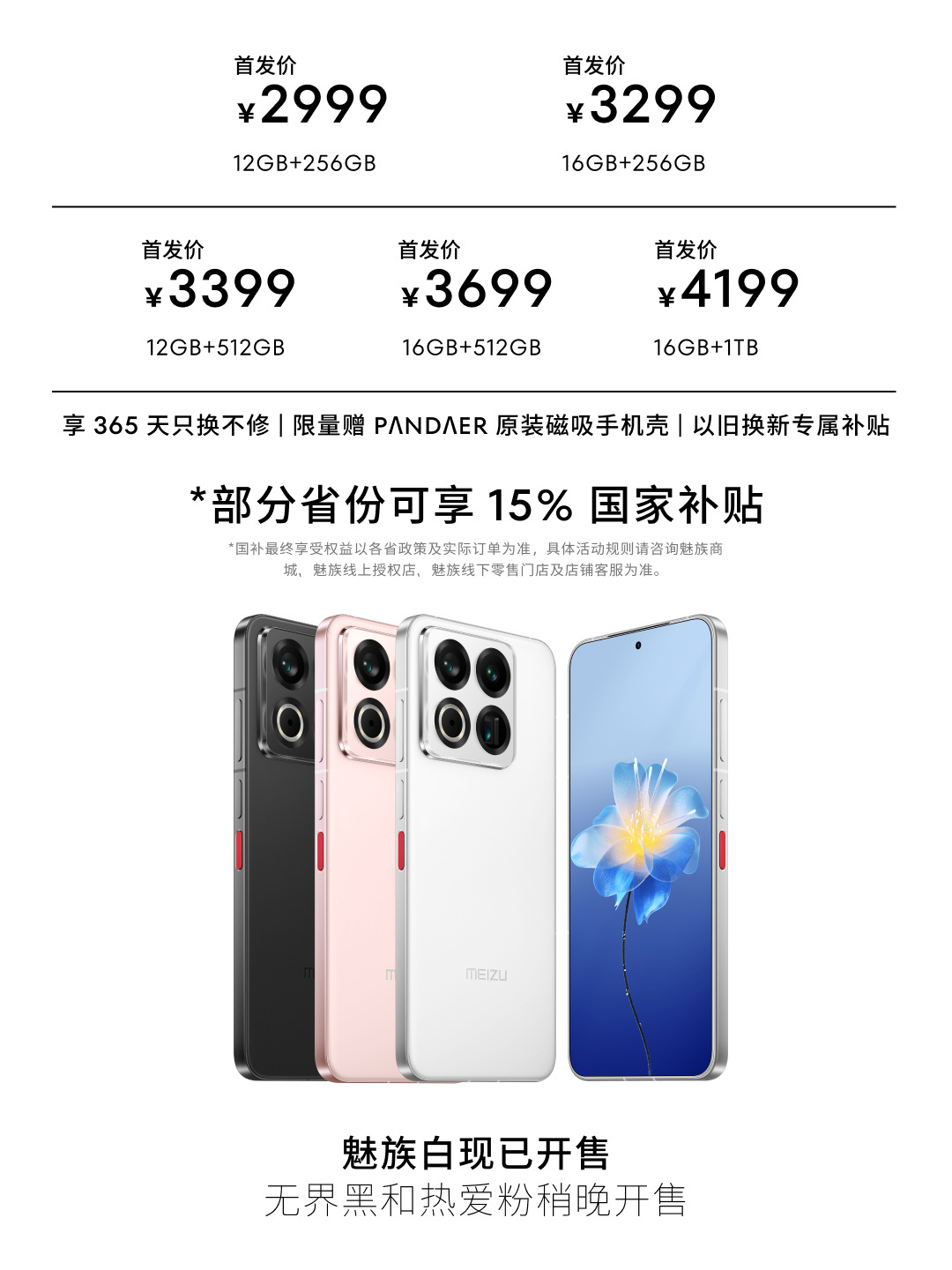 那麼這樣一臺魅族旗艦要多少錢呢?2999 起,帶 UWB 和 DP 輸出的頂配來到了 4199 。。。