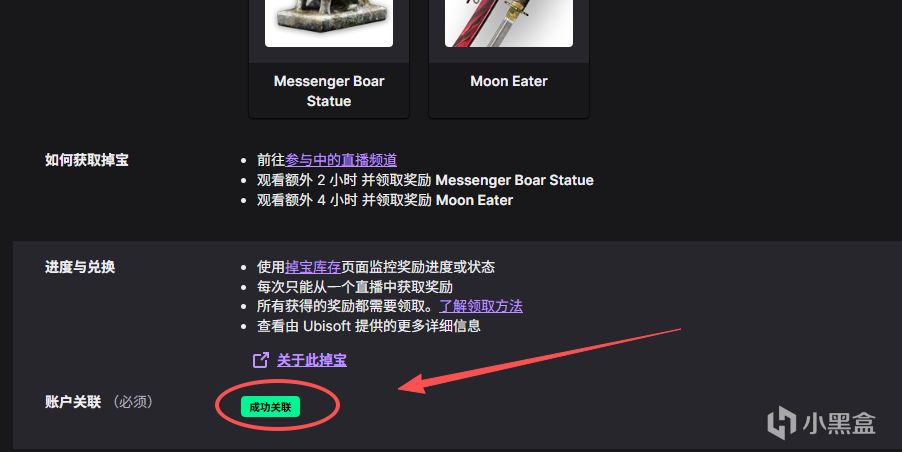 *一定要注意綁定好育碧和 Twitch 賬號,否則獎勵不到賬,綁定頁面 - https://www.twitch.tv/drops/campaigns: