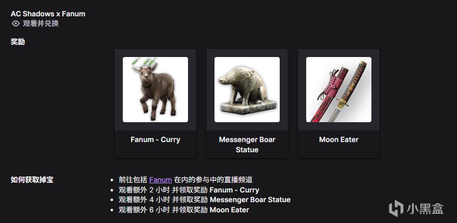 隨着《刺客信條:影》新 DLC“淡爪之路”的上線,Twitch 也開啓了專屬的掉寶活動。目前共分爲三個板塊: