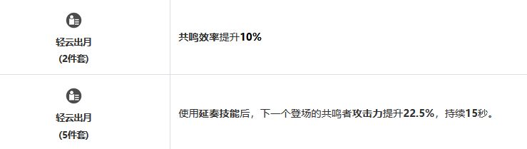 3C选择双属性伤害或者1属1攻击,伤害差距不高但攻击加成会转换为尤诺的奶量,1C攻击不必多说。不过需要注意的是,尤诺需要的充能比较多,盾装需要130%,轻云需要135%辅助循环,如果盾装实在是缺充能,下下策也能把10%的风伤两件套换成轻云两件套,在充能满足需求的情况下两套的副词条选择均为: