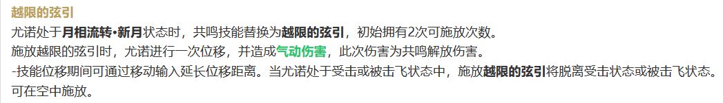 我的天呐尤诺大人,玩上尤诺就像坐上轮椅一样简单,其实到这里你就已经会玩尤诺了,不过咱们还是得详细讲讲尤诺的技能和平常大世界的玩法,尤诺的核心机制是她拥有的三个形态,常态,能量积攒形态,能量释放形态。常态不必多说,进入能量积攒形态除了我们刚刚提到的辅助轴通过共鸣解放直接进入之外,还有多种进入方式,包括: