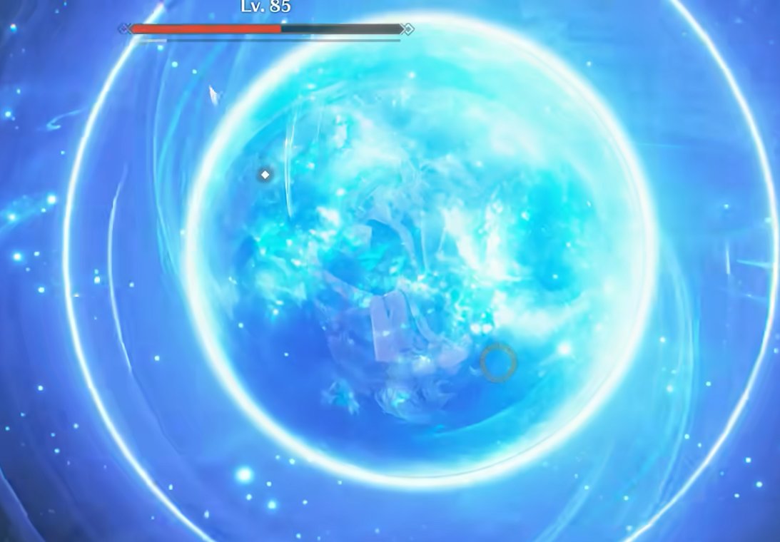 能量积攒状态下,能量条会从灰色变为一个下弦月,这个条叫做“月相流转·弦月”,空中的月亮也会转换为弦月状态,同理,之后的能量消耗状态叫“月相流转·新月”,换形态后月亮也会变成新月,姐们这么变月亮,索拉里斯不会被海淹了吗,哦好像索拉里斯的月亮本来就炸了来着。