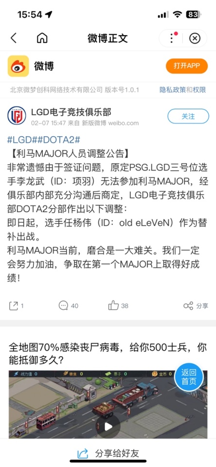 LGD替补公告:项羽签证问题无法参赛,老十一替补出战