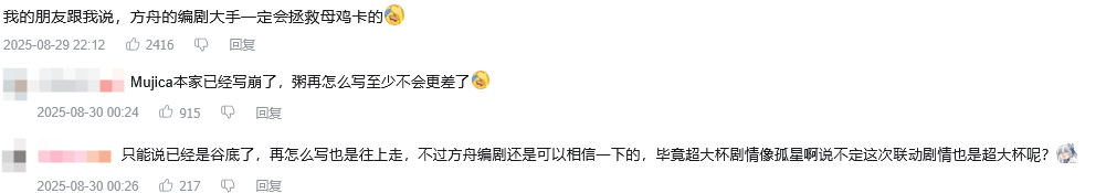行吧,我是看出来了,海猫这波联动不是因为他有品,而是在向其他IP展示广告位:哥们联动玩的就是一个用爱发电,效果就和我们游戏的热度一样,全都是大风刮来的!不信你看评论区已经把粥友都钓成翘嘴了,各种跪求联动,原来这波你海猫鸽鸽其实一直在第三层啊!