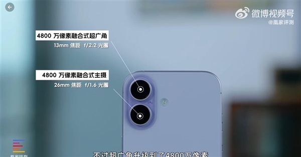 影像上,iPhone 17仍然维持了标准版的水准,仅配备两颗摄像头,其中超广角升级到了4800万像素。