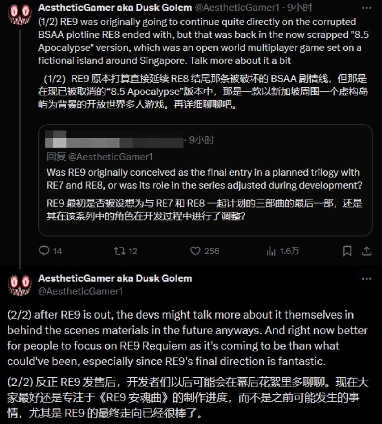 此外他还爆料称《生化危机9》原本打算直接延续《生化危机8》结尾“腐化的BSAA”这一剧情线,但那已经是早期的制作版本——一款以新加坡附近的虚构小岛为舞台的开放世界多人游戏。