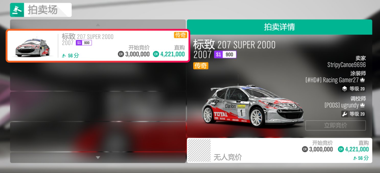 獎勵車輛爲:2007款標誌 207 SUPER 2000(稀有車)