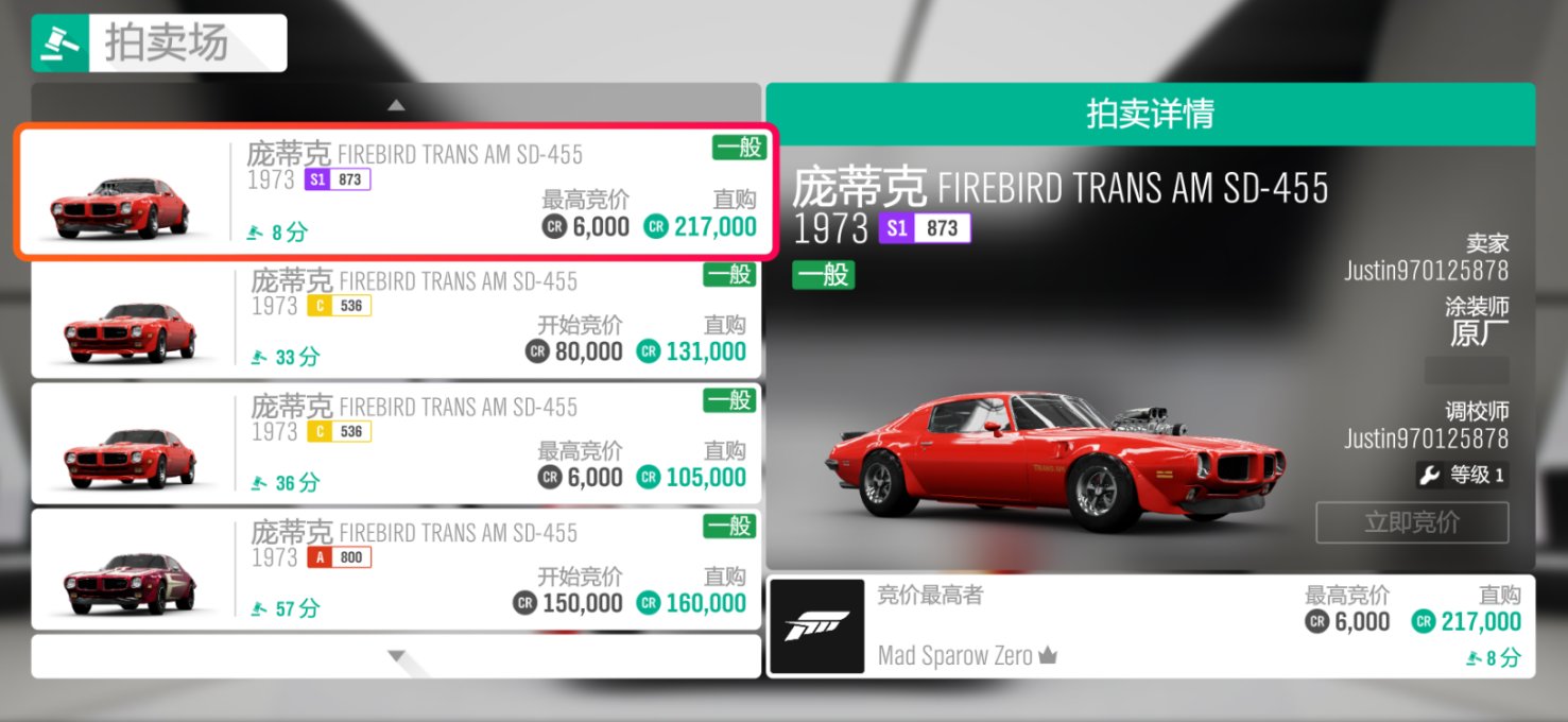 獎勵車輛爲:1973款龐蒂克FIREBIRD TRANSAM SD-455