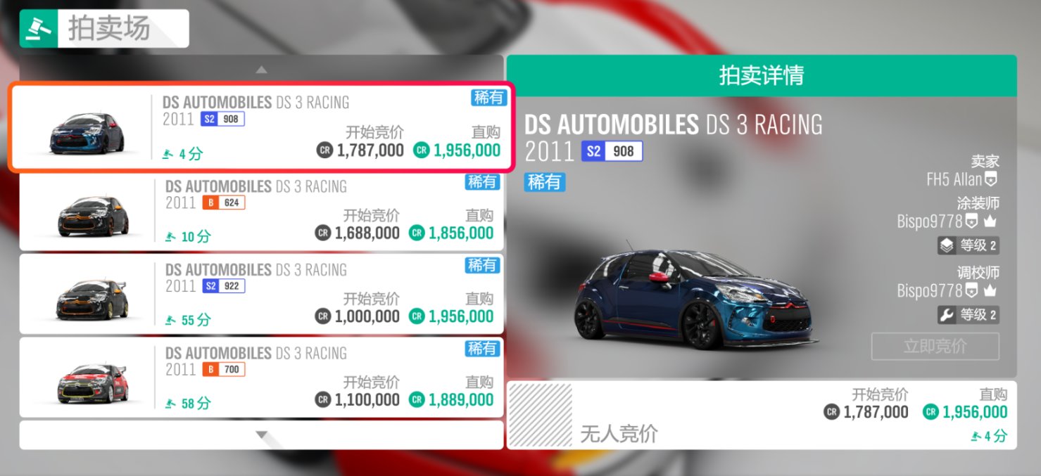 獎勵車輛爲:2011款DS AUTOMOBILES DS 3 RACNG(稀有車)