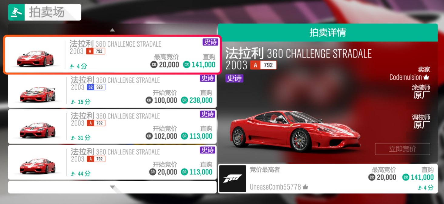 獎勵車輛爲:2003款法拉利360 CHALLENGE STRADALE