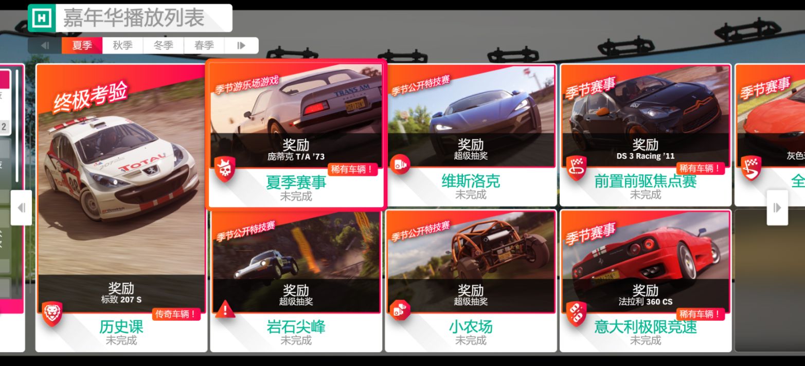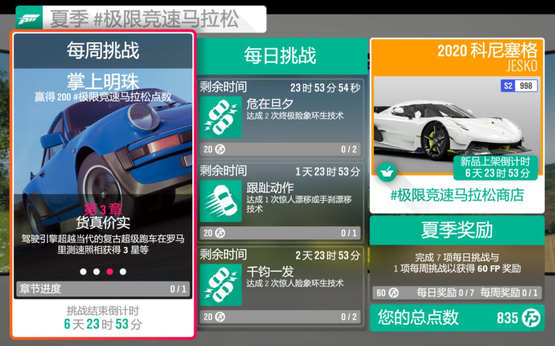 夏季賽進度獎勵爲50%完成1972款馬自達COSMO 110S SERIES II和80%完成2004款瑪莎拉蒂MC12(馬自達這輛車特別稀有,請務必拿下)