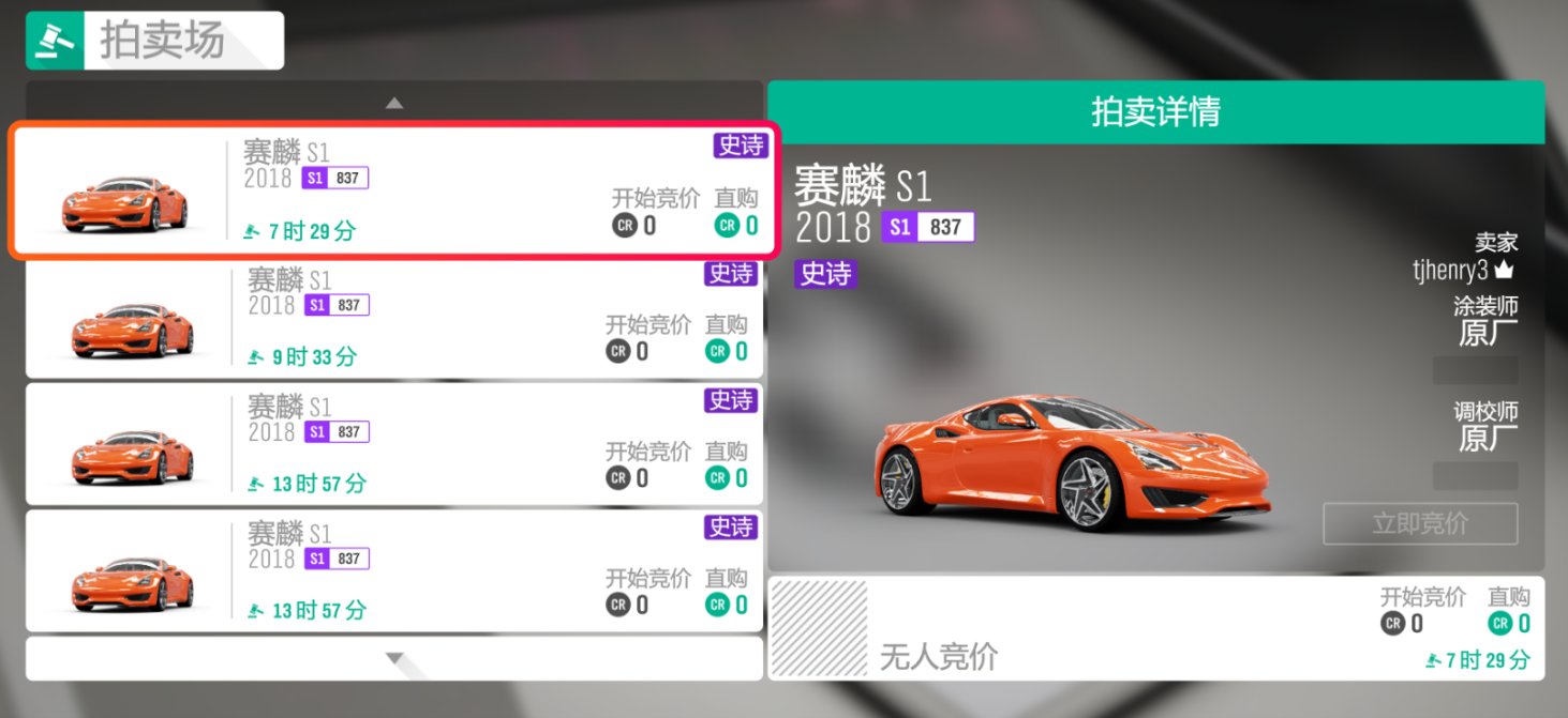 S52賽季系列賽進度獎勵爲50%完成地平線後臺通行證和80%完成2018款賽麟S1(拍賣場價格bug)