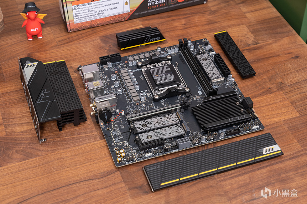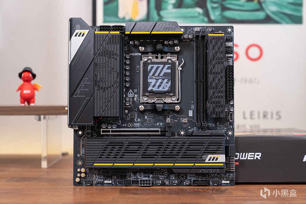 微星 B850MPOWER 主板在外观设计上延续了一贯的哑黑辅以黄色线条点缀,主板VRM供电区域、主M.2和内存边上的M.2槽位上对应覆盖棱角分明的金属散热装甲,表面通过MPOER和龙型LOGO暗纹提升辨识度。采用8层服务器级PCB,8层优化PCB 设计确保更高的频宽和更快的传输速度,增强可靠的电路传输以获得卓越的效能。