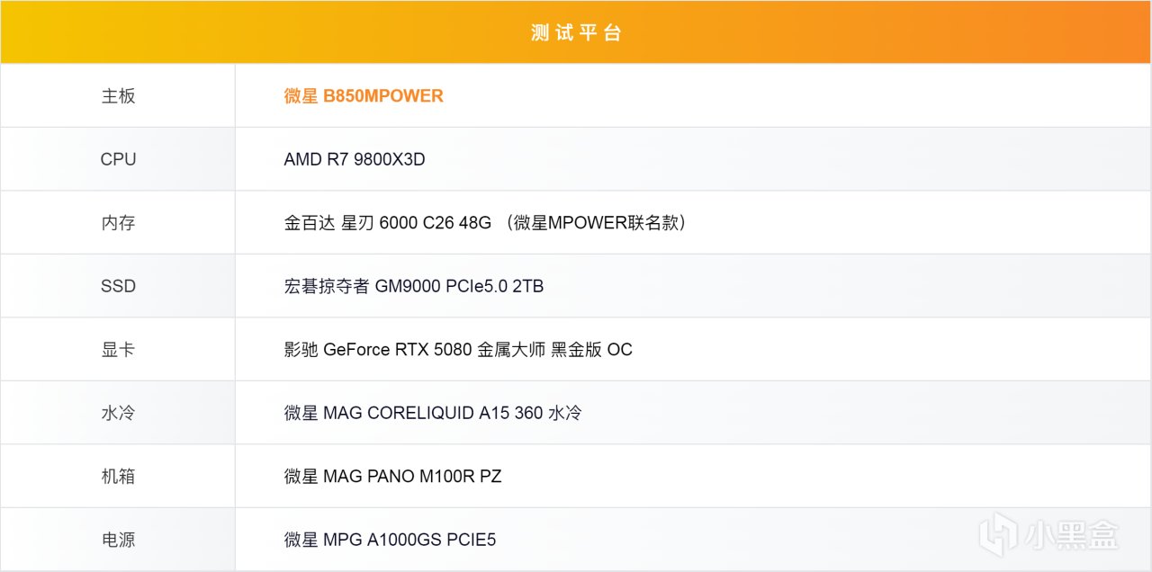 本次使用9800X3D来搭配微星 B850POWER进行测试,搭配金百达微星MPOWER联名看进行测试。主要针对内存超频、PBO超频、PBO+eCLK超频进行对比,体现微星 B850POWER的强大性能。按照老规矩在开始测试之前先介绍一下本次的测试平台配置。